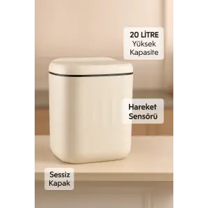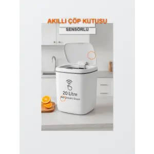 20L Sensörlü Akıllı Antibakteriyel Çöp Kovası Otomatik Kapaklı, Banyo Mutfak 4 Pil Yanında