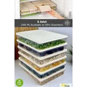 6 Adet 2400 ML Buzluk Derin Dondurucu Buzdolabı Düzenleyici Hava Almaz Saklama Kabı
