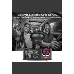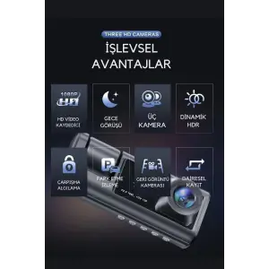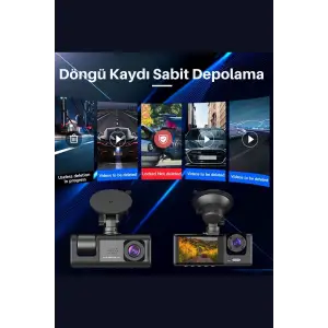Siyah 1080p Araç içi 3 Kameralı Lcd Ekranlı Gece Görüşlü , G-sensör , Geri Görüş Kamera