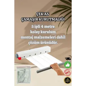 Lüx Çamaşır Kurutmalık Çek As 5 İpli 4 Metre Kolay Kurulum Açılır Kapanır Ergonomik Dayanıklı