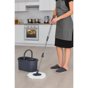 Otomatik Mop Seti Paspas ve Sıkma Kovası, 360° Döner Başlıklı Mikrofiber Yer Temizleme Yeşil