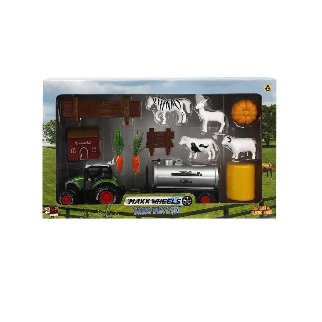 Farklı parça sayılarına sahip bu set içerisinde; traktör, çiftlik hayvanları çitler, çiftlik aksesuarları, römork veya tanker yer almaktadır.