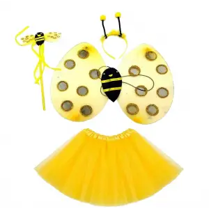 Sarı Renk Arı Kostüm Seti - Tütü, Kanat, Taç, Asa