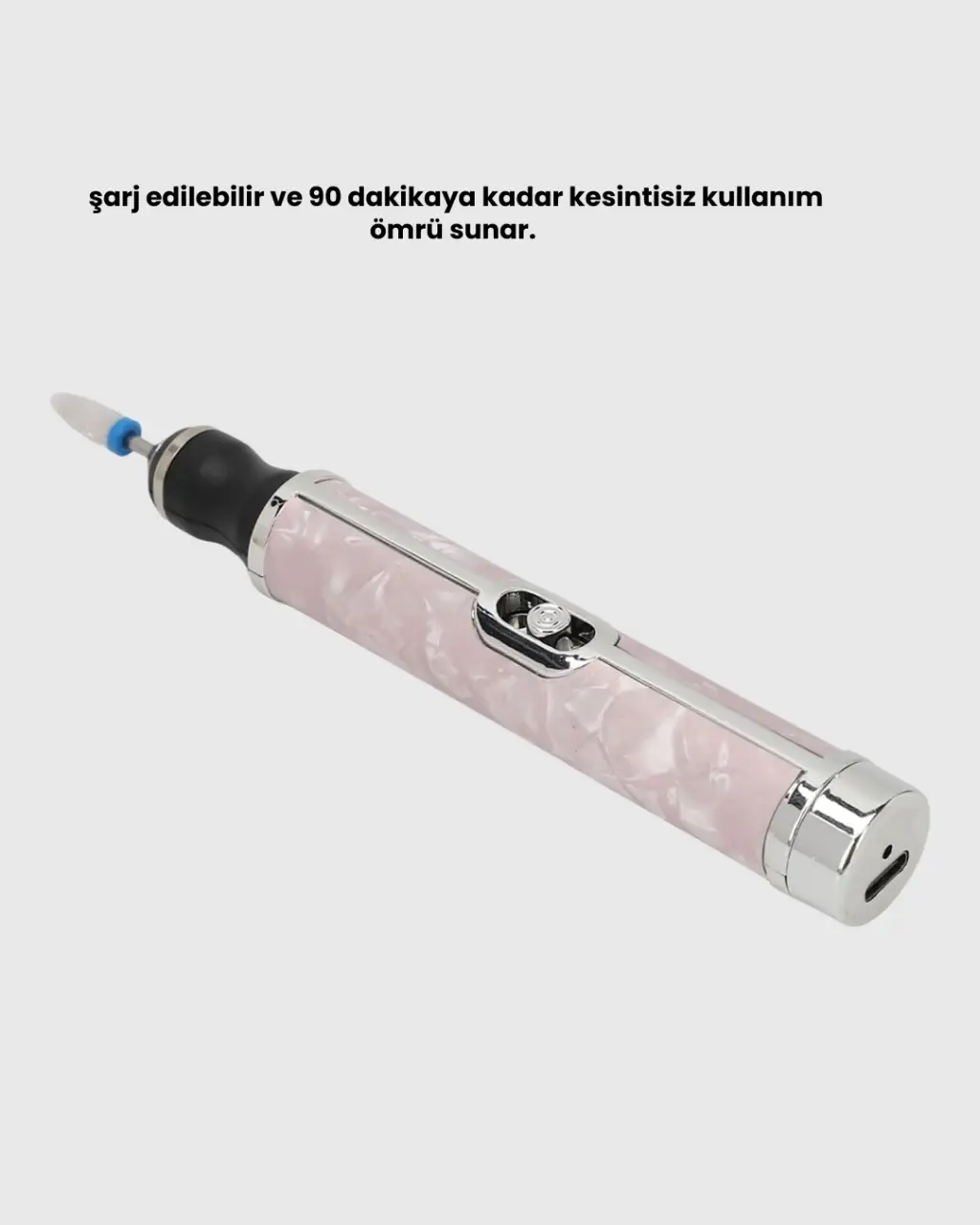 Cihaz, ergonomik yapısı ve kaymaz tutuş sağlayan yüzeyi sayesinde uzun süreli kullanımda bile el yorgunluğunu önler. Isınma yapmayan motor teknolojisi ile güvenli kullanım sağlar. 20.000 RPM hız kapasitesi, jel oje sökmeden akrilik şekillendirmeye kadar birçok işlemde profesyonel sonuç verir. USB ile şarj edilebilmesi cihazı her ortamda kullanmayı mümkün kılar. 90 dakikalık kullanım süresi sayesinde tek şarjla tüm tırnak bakım rutininizi tamamlayabilirsiniz. Hem profesyoneller hem de yeni başlayanlar için uygun olan bu tırnak matkabı, tırnak bakımını hızlı, kolay ve profesyonel hale getirir.