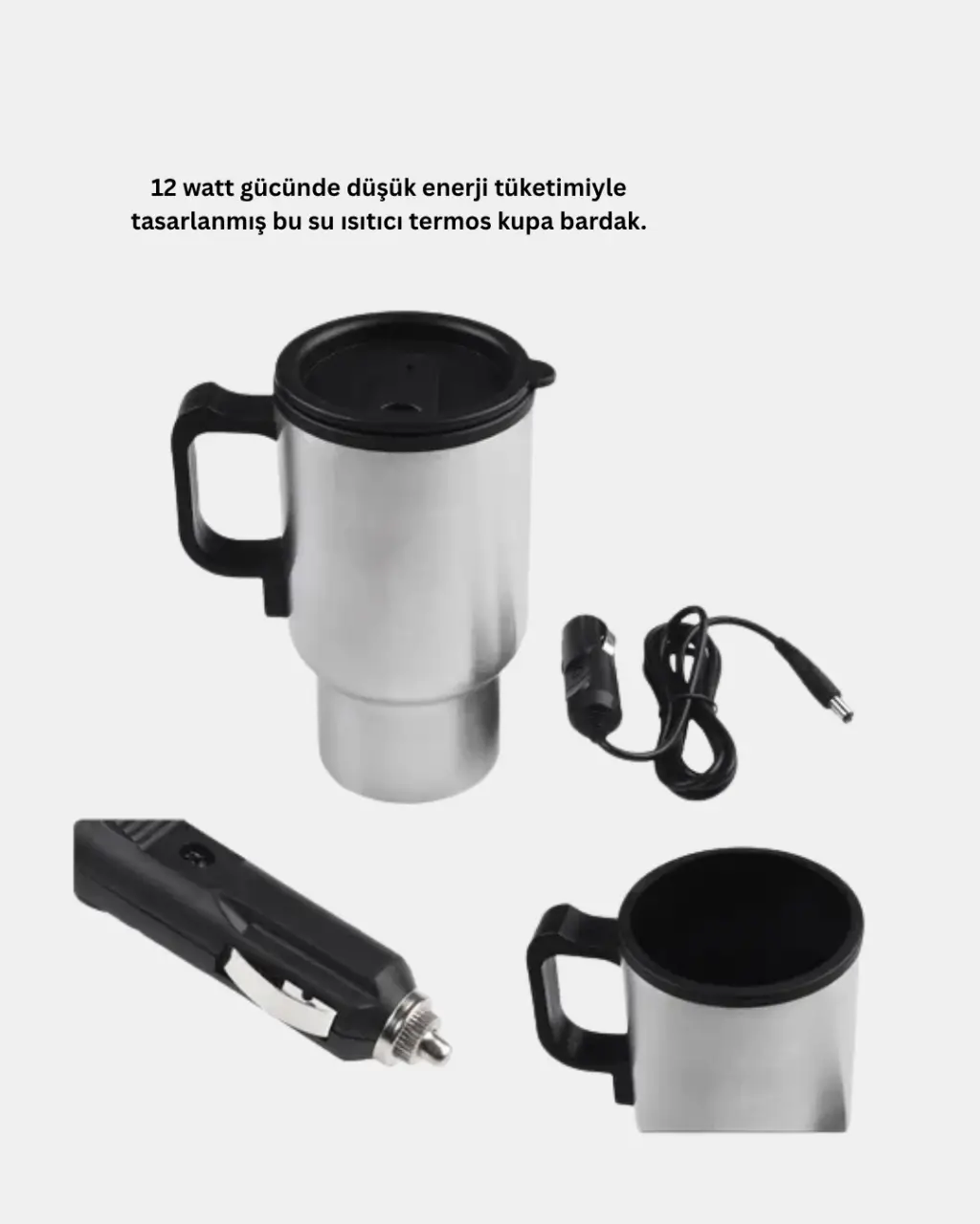 12 watt gücündeki Araç İçi Isıtıcı Termos Kupa Bardak, sıcak içeceklerini her zaman hazır bulundurmak isteyen sürücüler için ideal bir üründür. Düşük enerji tüketimi sayesinde hem ekonomik hem de çevre dostu bir kullanım sunar. Araç çakmaklık girişine doğrudan bağlanabilmesi, ürünü son derece pratik hale getirir. Tak çalıştır özelliği sayesinde montaj gerektirmez ve yolculuk sırasında anında sıcak suya ya da sıcak içeceğe sahip olmanızı sağlar.Ürünün paslanmaz çelikten üretilmiş iç haznesi, sıcaklığı daha uzun süre muhafaza ederken aynı zamanda hijyenik bir kullanım sunar. Isıya dayanıklı dış yüzeyi ise elinizi korur ve termosun güvenle tutulmasını sağlar. Ergonomik yapısı ve kaymaz tabanı sayesinde araç içinde sabit durur ve yolda oluşabilecek sarsıntılara karşı dayanıklıdır.Termos kapak yapısı dökülmeleri önlemek üzere tasarlanmıştır. Araç hareket halindeyken bile güvenli bir şekilde kullanım sağlar. Kahve, çay, sıcak çikolata, sallama çay ve sıcak su gibi pek çok içecek için uygundur. Özellikle kış aylarında sıcak bir içeceğe her an ulaşabilmek büyük bir konfor sağlar.Enerji tasarruflu 12W gücü, aracın elektrik sistemine zarar vermeden uzun süreli kullanım imkânı sunar. Akü dostu yapısı sayesinde aracınızı çalıştırmadan bile içecek ısıtma işlemini güvenle gerçekleştirebilirsiniz. Kompakt boyutu araç bardaklıklarıyla uyumludur ve saklaması son derece kolaydır.Uzun yol sürücülerinin, taksi şoförlerinin, kamyon kullanıcılarının ve kamp tutkunlarının vazgeçilmezi olacak bu ısıtıcı termos kupa, sıcak içeceğinizi her an elinizin altında bulundurmanıza imkan tanır. Pratik, dayanıklı ve ekonomik yapısıyla günlük yaşamda konforu artıran fonksiyonel bir çözümdür.