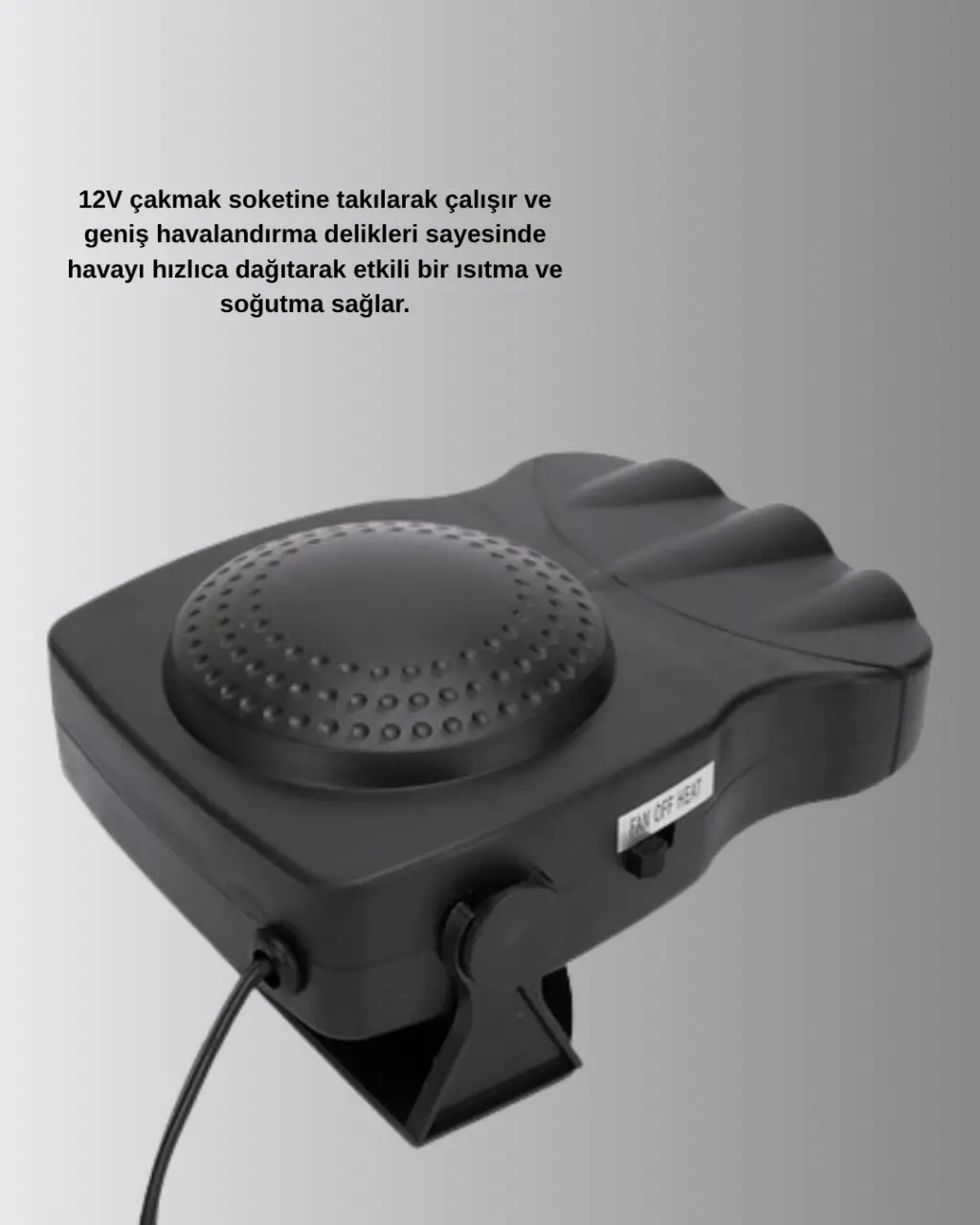Kışın soğuktan, yazın bunaltıcı sıcaktan kurtulmak artık çok kolay! 150W Araç İçi Isıtıcı ve Fan Kompakt Tasarım ve Hızlı Isıtma Özellikli, yıl boyunca aracınızda konforu garanti eder.Gelişmiş 3’ü 1 arada sistemi, ısıtıcı, fan ve buz çözücü özelliklerini bir araya getirir. Bu sayede kışın camlardaki buğuyu hızla temizlerken yazın serin bir hava akışı sağlar.12V çakmak girişiyle çalışan cihaz, her araçla uyumludur.1,2 metre uzunluğundaki güç kablosu, esnek bir kullanım alanı yaratır.360° dönebilen başlık, havayı istediğiniz yöne yönlendirmenizi sağlar — ön cam, sürücü bölgesi veya yolcu tarafı fark etmeden tüm alanlarda etkili bir performans sunar.Sağlam ABS plastik gövdesi, yüksek sıcaklıklara karşı dayanıklıdır.Küçük ama güçlü tasarımıyla aracınızda yer kaplamaz ve kolay taşınır.Hem güvenli hem de sessiz çalışan bu ısıtıcı, donmuş camları çözme ve kabin içi ısı dengeleme konusunda en pratik çözümlerden biridir.Kışın sıcak, yazın serin sürüş keyfini bu çok yönlü cihazla yaşayın!