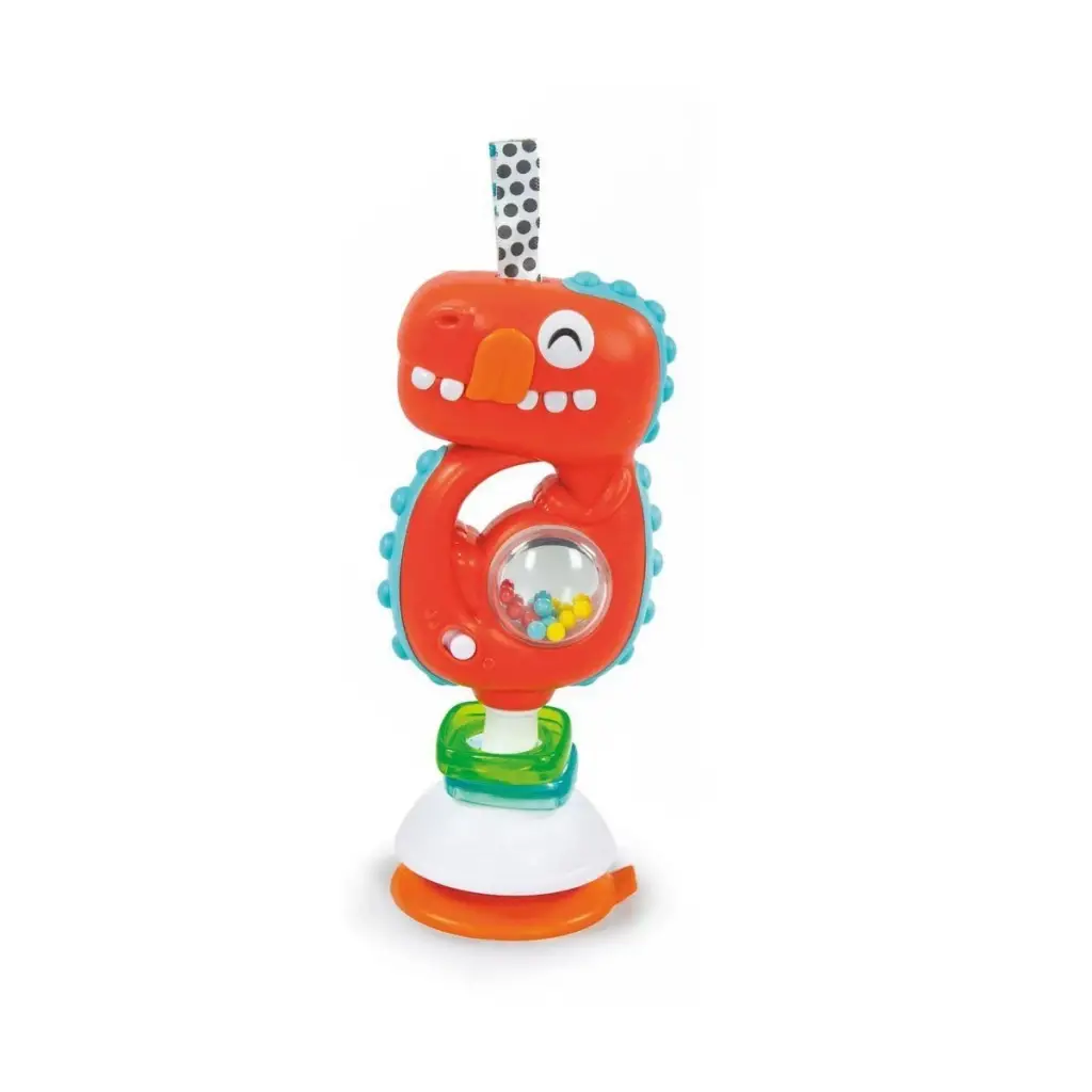 Yemek zamanında çıngırağın masada veya mama sandalyesinde dik durmasını sağlayan pratik bir vantuza sahiptir.