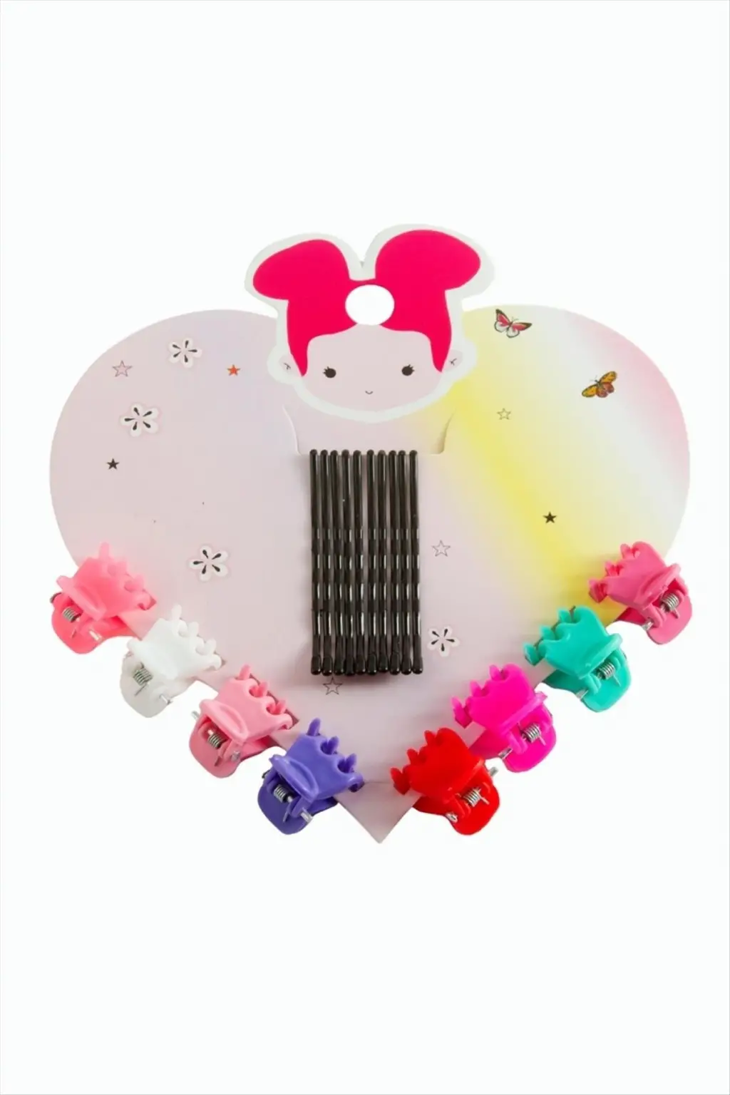 Toka; Ürün malzemesi plastik ve metaldir. Ürün mandal toka boyu 1,5 cm ve tel toka boyu 5 cmdir. 1 kartta 8 adet mandal toka ve 10 adet tel toka olarak gönderilecektir.