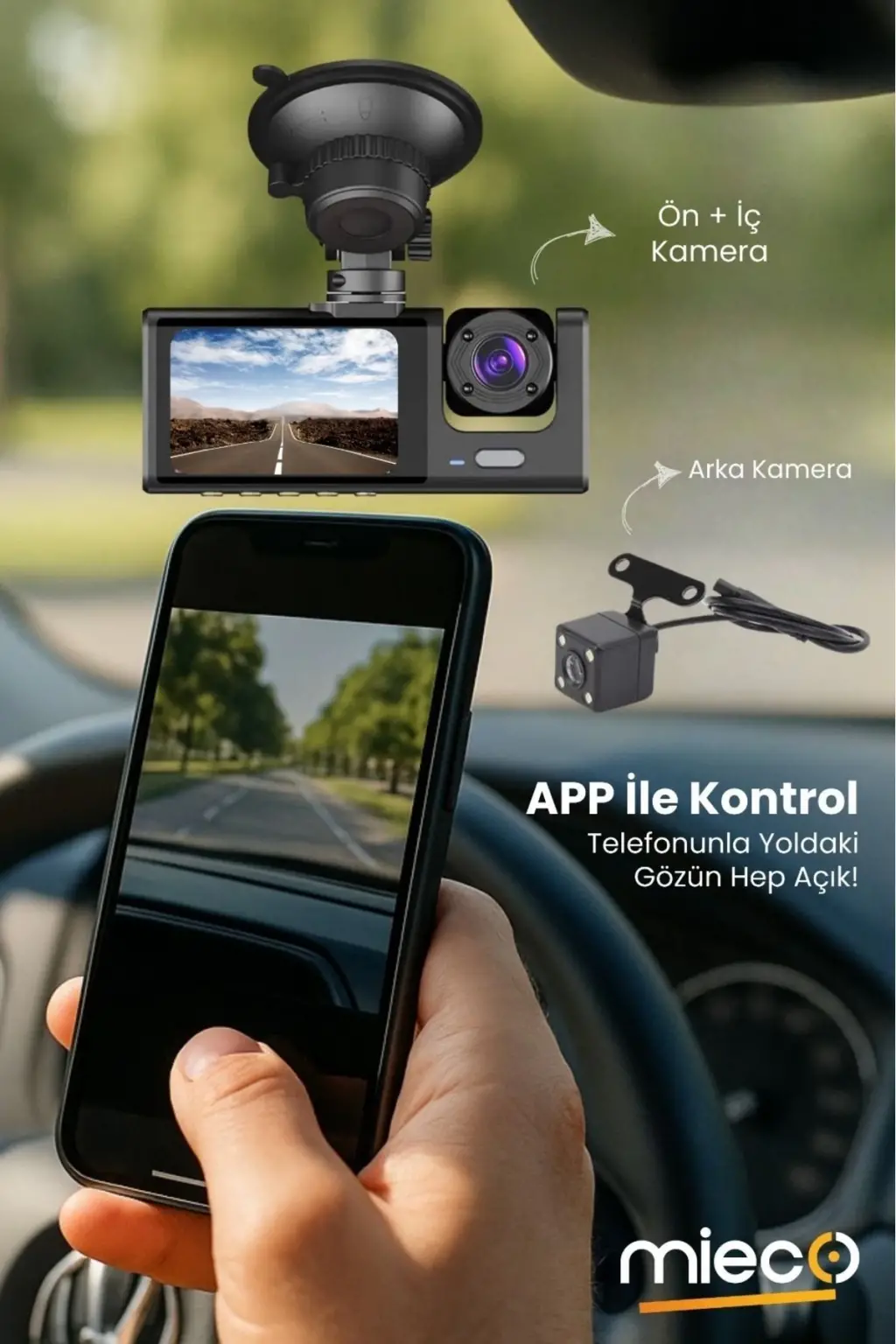 Üç Kameralı Ön Iç Arka Araç Içi Kamera Wifi Viidure App Mpıa CC38 64GB