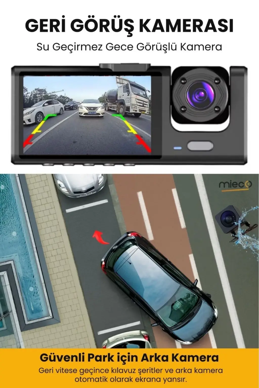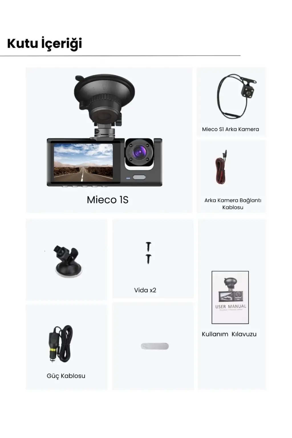 S-1 1080p Araç içi Kamera 3 Kameralı ( Ön Görüş - Geri görüş - İç Görüş ) Gece Görüşlü