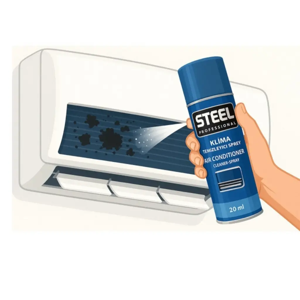 200 ML KLİMA TEMİZLEYİCİ SPREY Ürün ÖzellikleriYaşam alanlarınızdaki hava kalitesini artırın ve klimanızın performansını koruyun! Klima Temizleyici Sprey, ev tipi ve araç içi klima sistemlerinde zamanla oluşan toz, kir ve istenmeyen kokuları gidermek için özel olarak formüle edilmiştir. 200 ml kompakt boyutuyla pratik bir kullanım sunan bu sprey, klimanın evaporatör ve filtre kısımlarına derinlemesine nüfuz ederek hijyenik bir temizlik sağlar. Düzenli kullanımda klimanızın çalışma verimliliğini artırırken enerji tasarrufu yapmanıza da yardımcı olur. Kötü kokuları kaynağında yok ederek ortama ferah ve taze bir hava yayar. Herhangi bir teknik servis gerektirmeden, profesyonel temizlik sonuçlarını kendi başınıza elde etmenizi sağlayan bu ürün, sağlıklı bir nefes için vazgeçilmezdir.Ürün Teknik ÖzellikleriÖzellikAçıklamaHacim200 mlKullanım AlanıEv Tipi Klimalar, Split Klimalar ve Araç KlimalarıEtkiToz ve Kir Temizliği, Koku GidericiAvantajCihaz Verimliliğini Artırır, Enerji Tasarrufu SağlarFormülHızlı Etkili ve Ferahlatıcı ParfümlüUygulamaAerosol Püskürtme MekanizmasıKullanım TalimatıKlimayı kapatın, filtreleri çıkarın. Spreyi temizlenecek yüzeye uygulayın ve etkisini göstermesi için 10-15 dakika bekleyin. Ardından klimayı düşük devirde çalıştırarak sistemin temizlenmesini sağlayın.