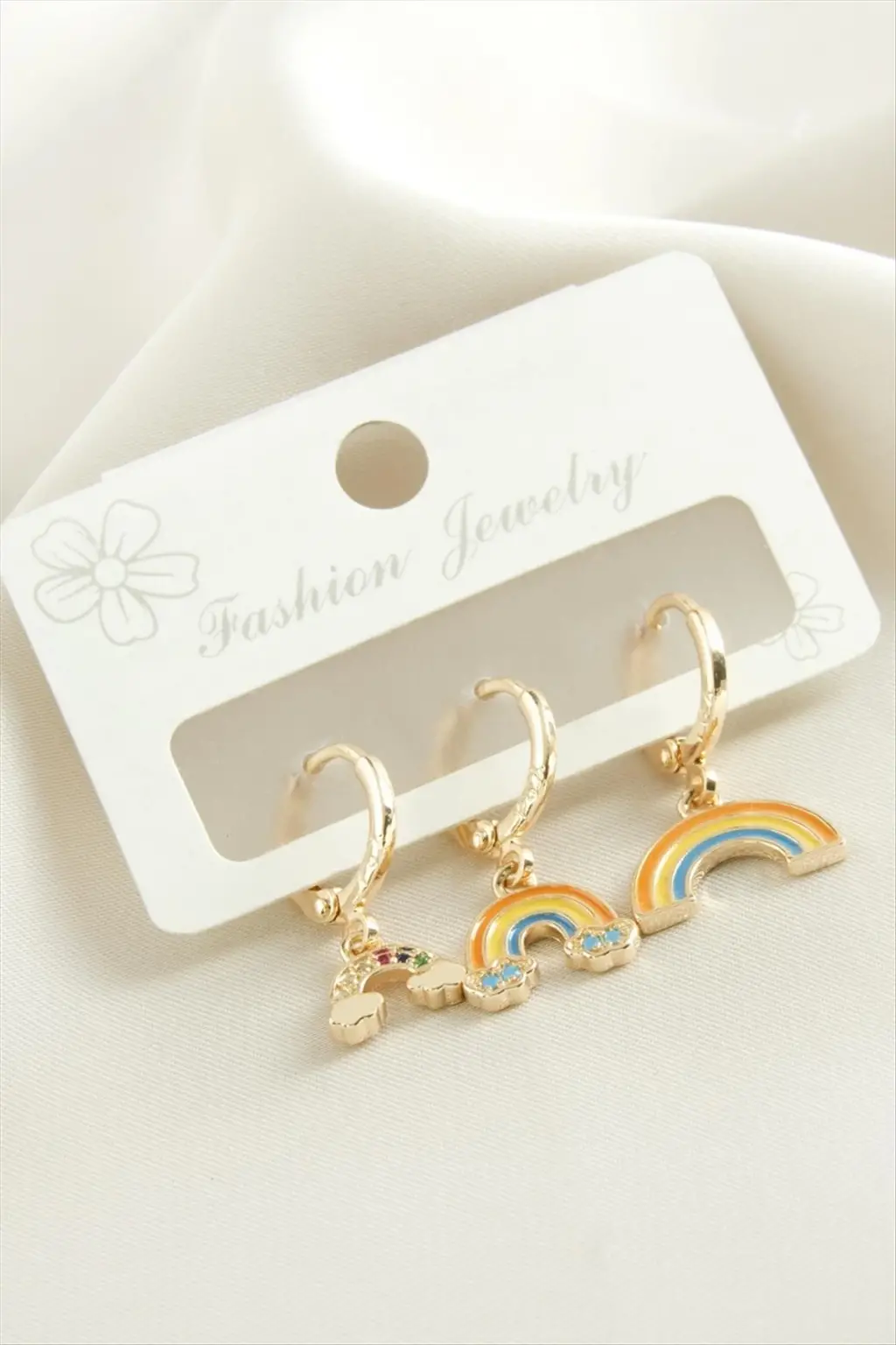 3 Adet Gökkuşağı Zirkon Taşlı Küpe