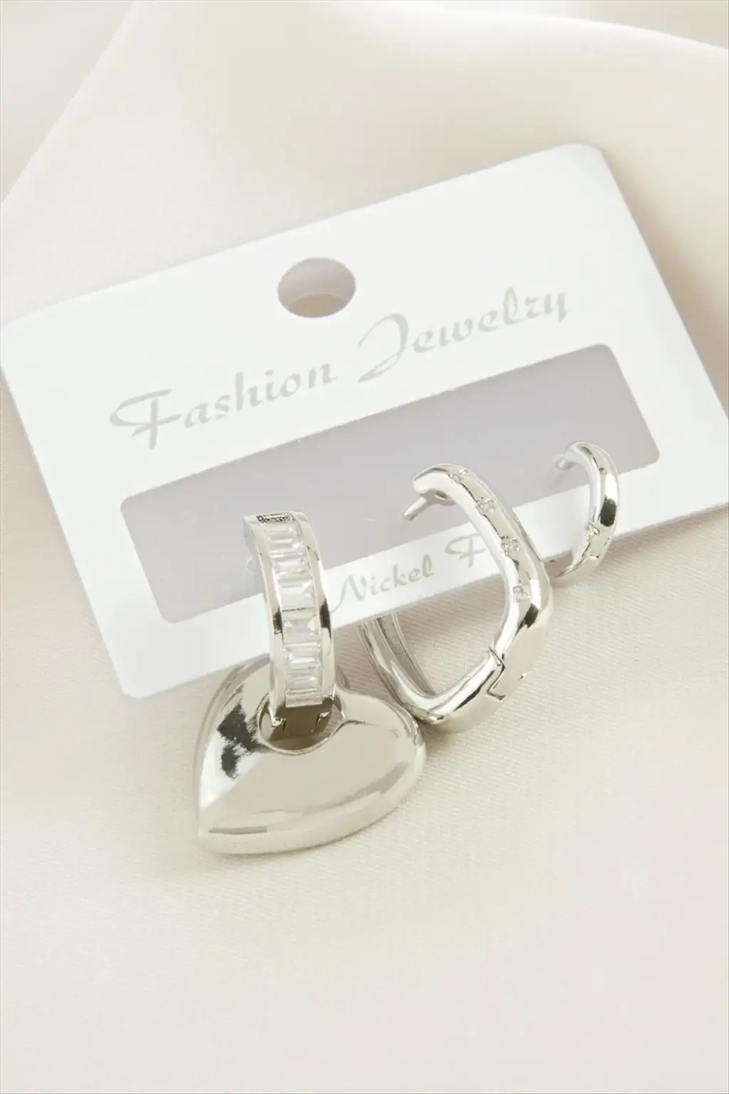 Küpe; Ürün malzemesi metal ve zirkon taşından imal edilmiştir. 1 sınıf kaliteli malzeme kullanılmıştır. Ürün boyu 3 cmdir. 1 kartta 3 adet küpe bulunmaktadır.