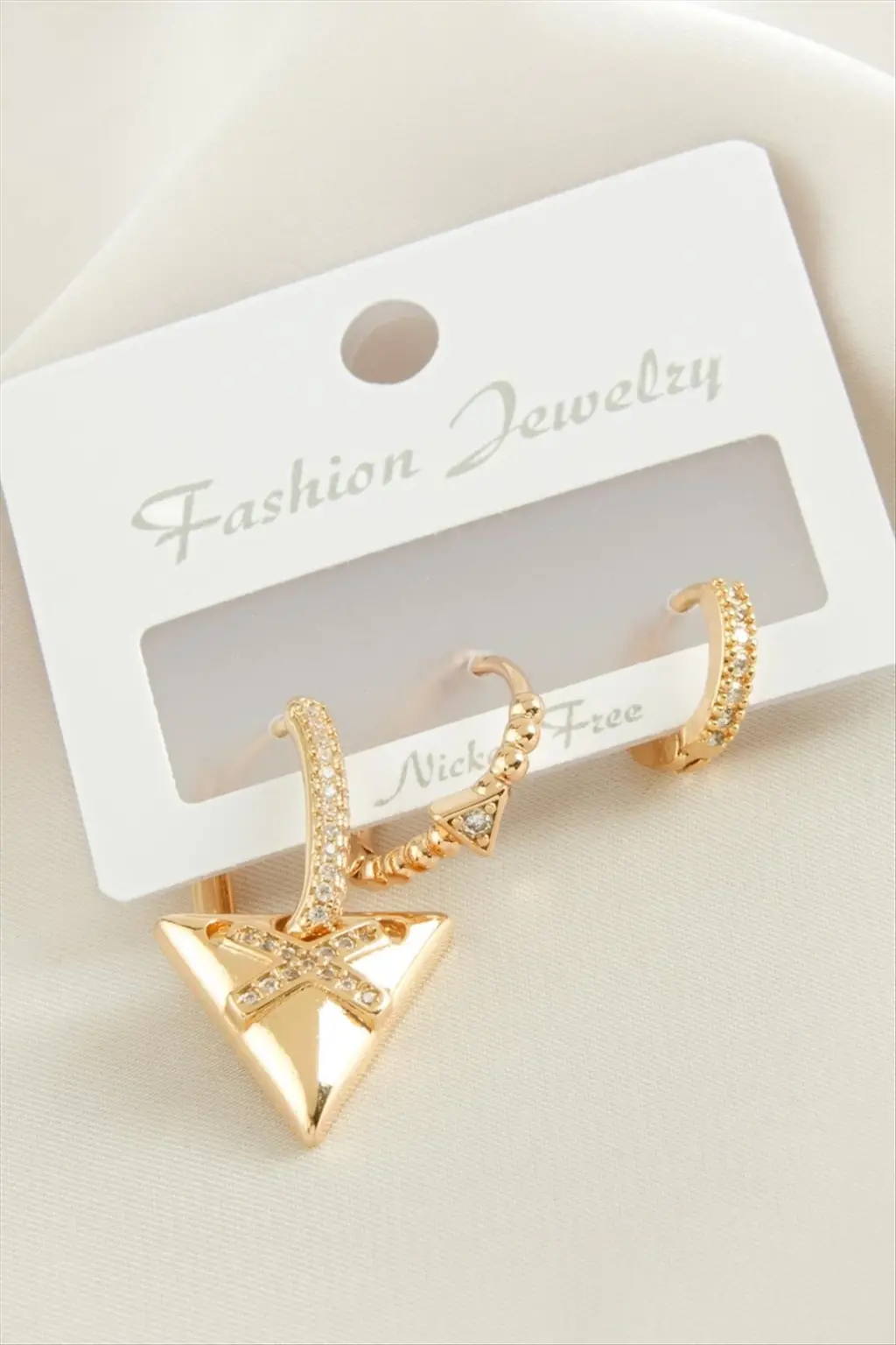 3 Adet Üçgenzirkon Taşlı Küpe