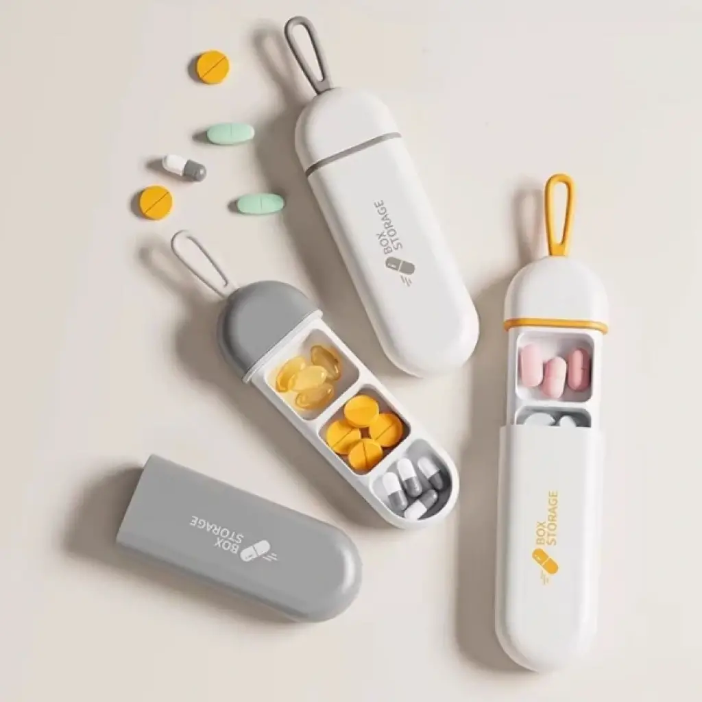 3 BÖLMELİ SEYAHAT TİPİ İLAÇ SAKLAMA KUTUSUÜrün Özellikleri3 bölmeli seyahat tipi ilaç saklama kutusu, günlük ilaç veya vitaminlerinizi düzenli şekilde taşıyabilmeniz için özel olarak tasarlanmıştır. Kompakt ve ergonomik yapısı sayesinde çanta, ceket cebi veya bavulda kolaylıkla taşınabilir. Sağlığa zararlı madde içermeyen kaliteli plastikten üretilmiştir. Sıkı kapanan kapak sistemi, haplarınızı nemden ve dış etkenlerden koruyarak tazeliğini uzun süre muhafaza eder. Suya dayanıklı ve hijyenik yapısı sayesinde seyahatlerde, iş yerinde veya spor çantasına atarak günlük kullanımda pratik bir çözüm sunar. Silinerek ya da elde yıkanarak kolayca temizlenebilir. Şık ve modern kapsül tasarımıyla hem zarif hem de işlevsel bir yardımcıdır.Paket İçeriği1 adet 3 Bölmeli Seyahat Tipi İlaç Saklama Kutusu