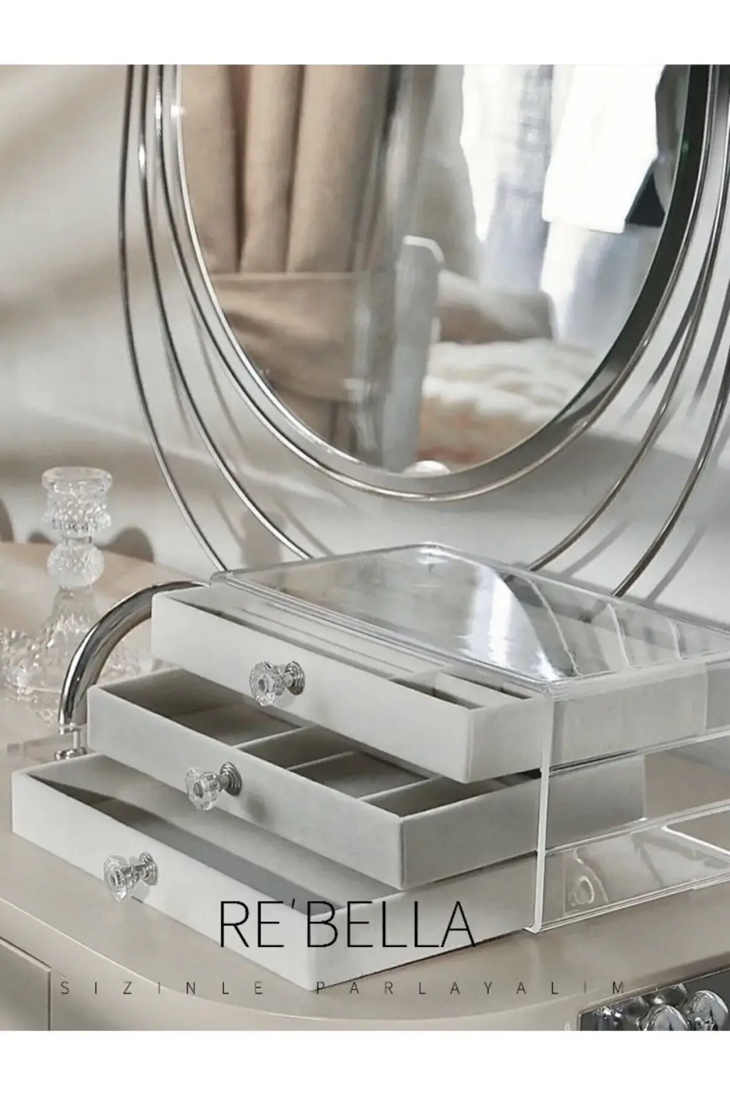 3 Çekmeceli Bölmeli Şeffaf Takı Kutusu | Mücevher Saklama Kutusu Krem Renk Seçeneği