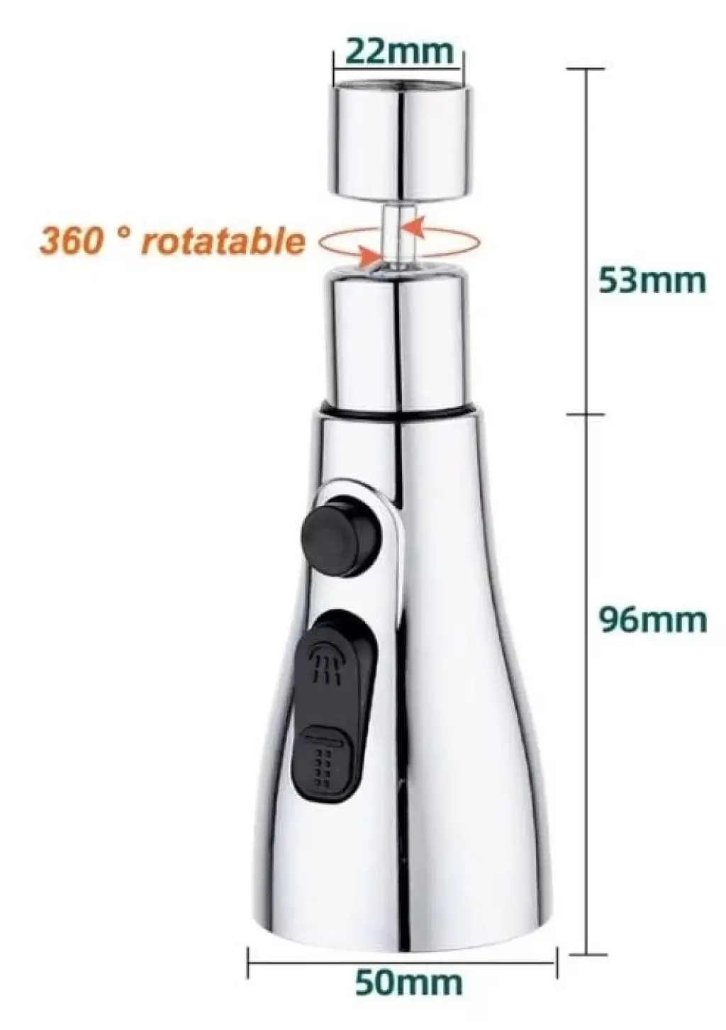 Döner musluk eki, lavabonun herhangi bir köşesini kolayca temizlemenize izin veren, 720 ° dönmesine izin veren bağımsız dönme ekseni ile tasarlanmıştır.