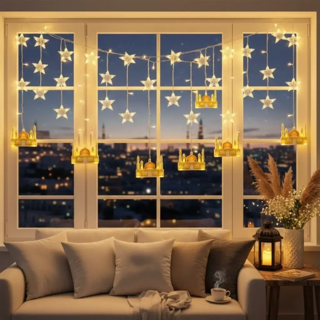 • 3 mt Fişli Sarı Cami Yıldız Ramazan Perde LED