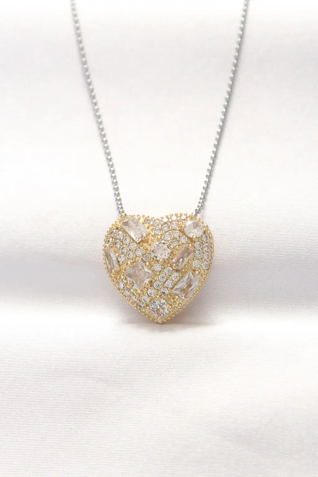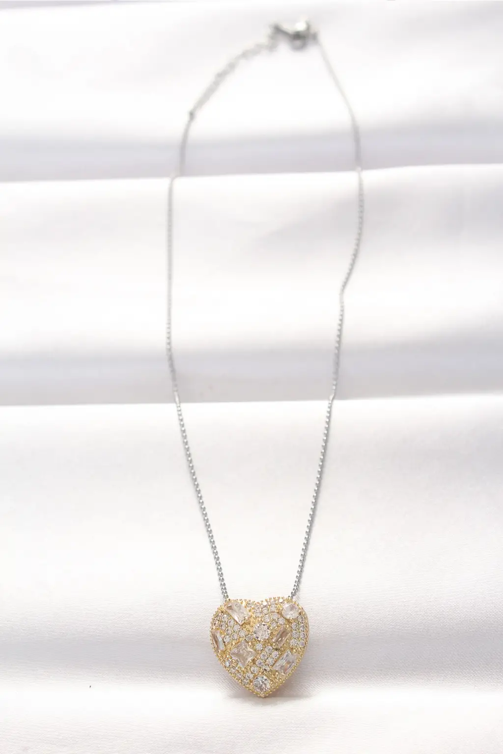316l Çelik Çift Renk Zirkon Taşlı Kalp Kolye