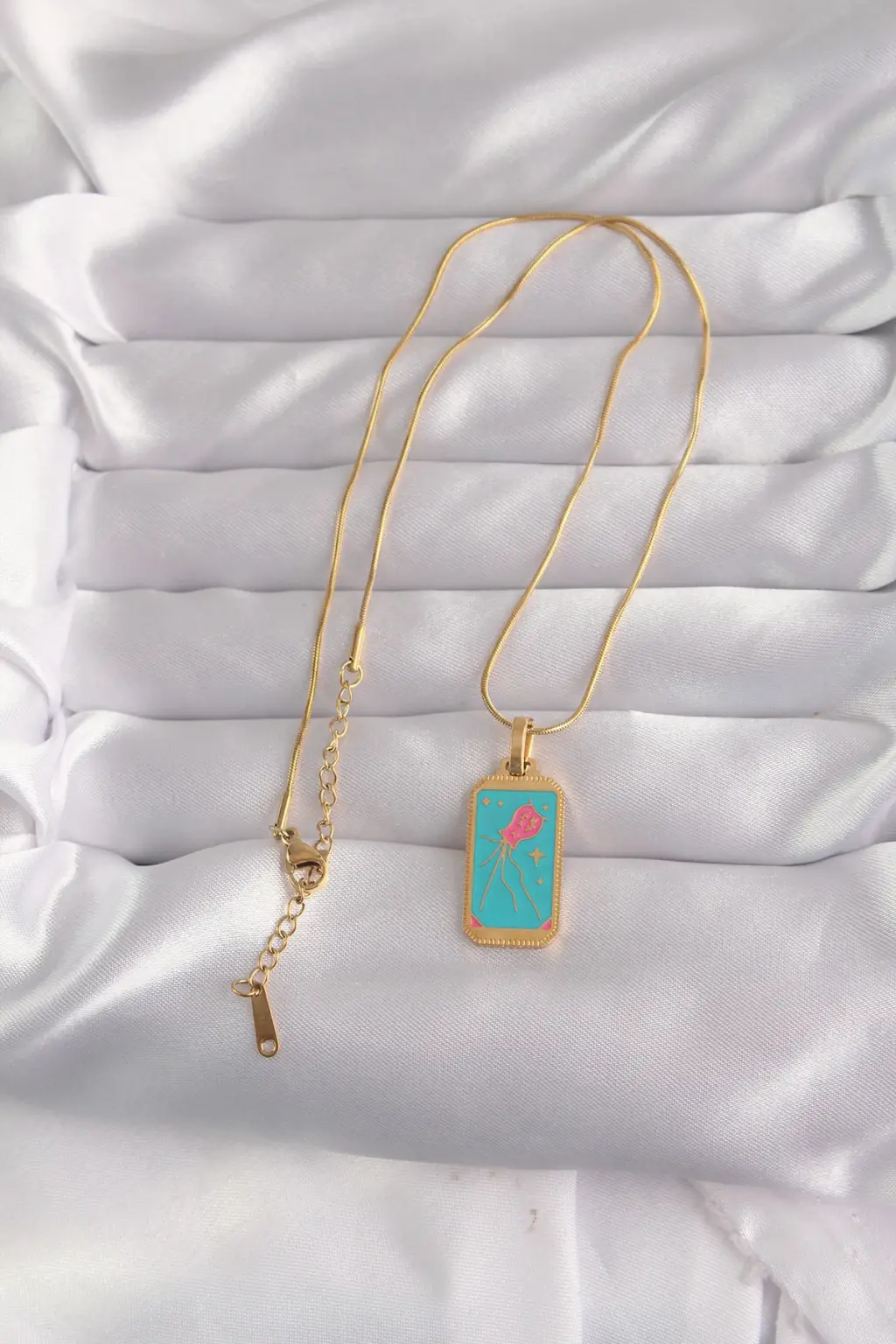 316l Çelik Gold Renk Mavi Mineli Tarot Kolye
