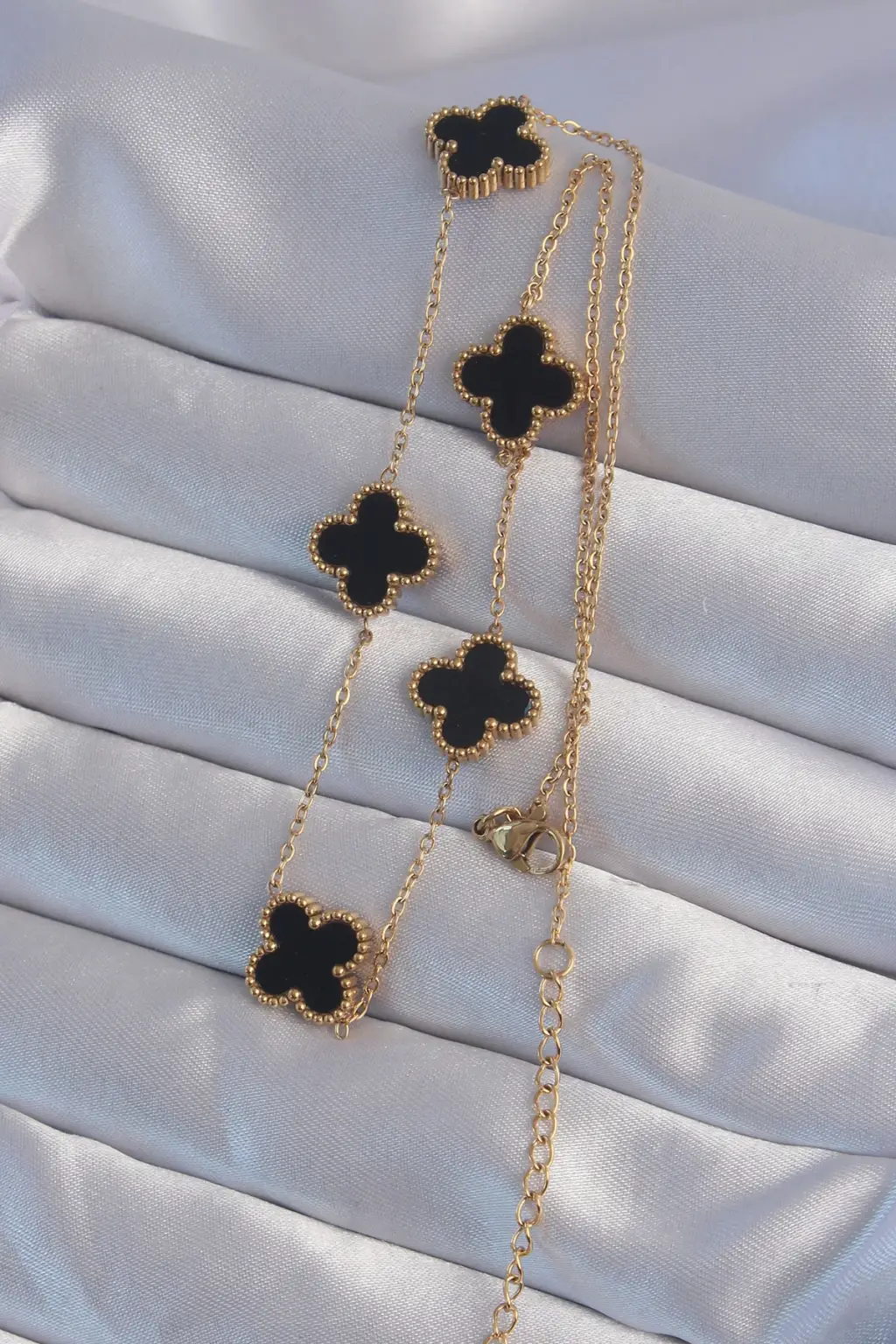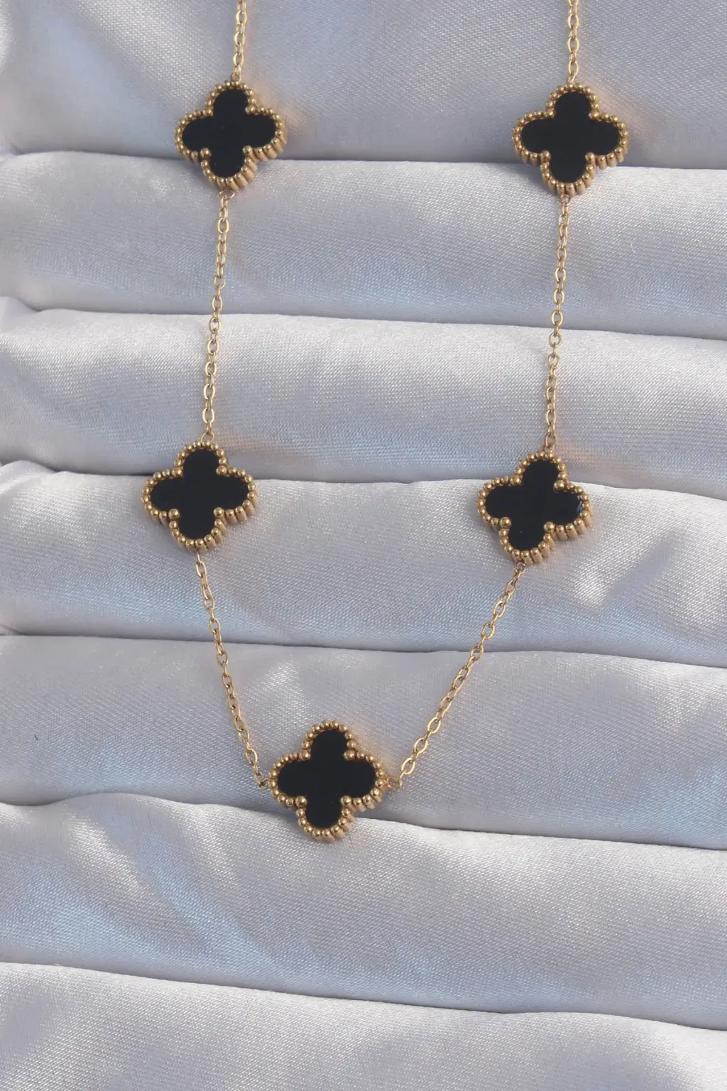 316l Çelik Gold Renk Siyah Mineli Yonca Kolye