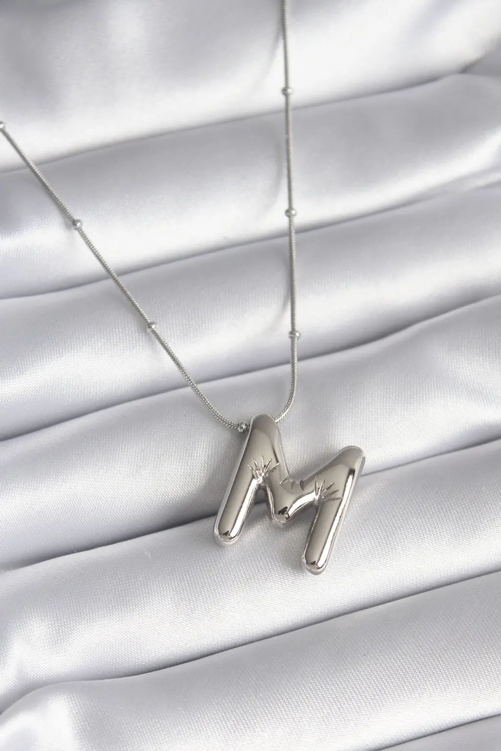 316l Çelik Gümüş Renk Bubble "m" Harf Model Kadın Kolye