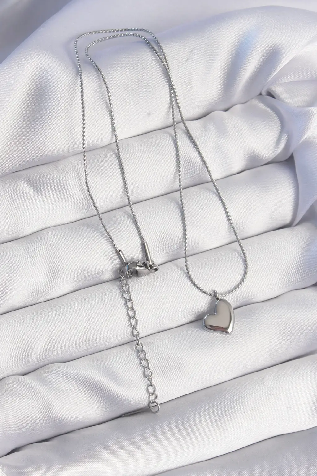 316l Çelik Gümüş Renk Minimal Kalp Tasarımlı Kolye