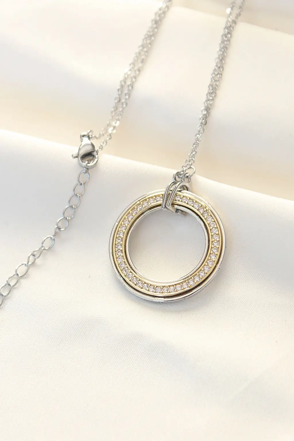 316l Çelik Zirkon Taşlı Çift Renkli Tifany Kolye