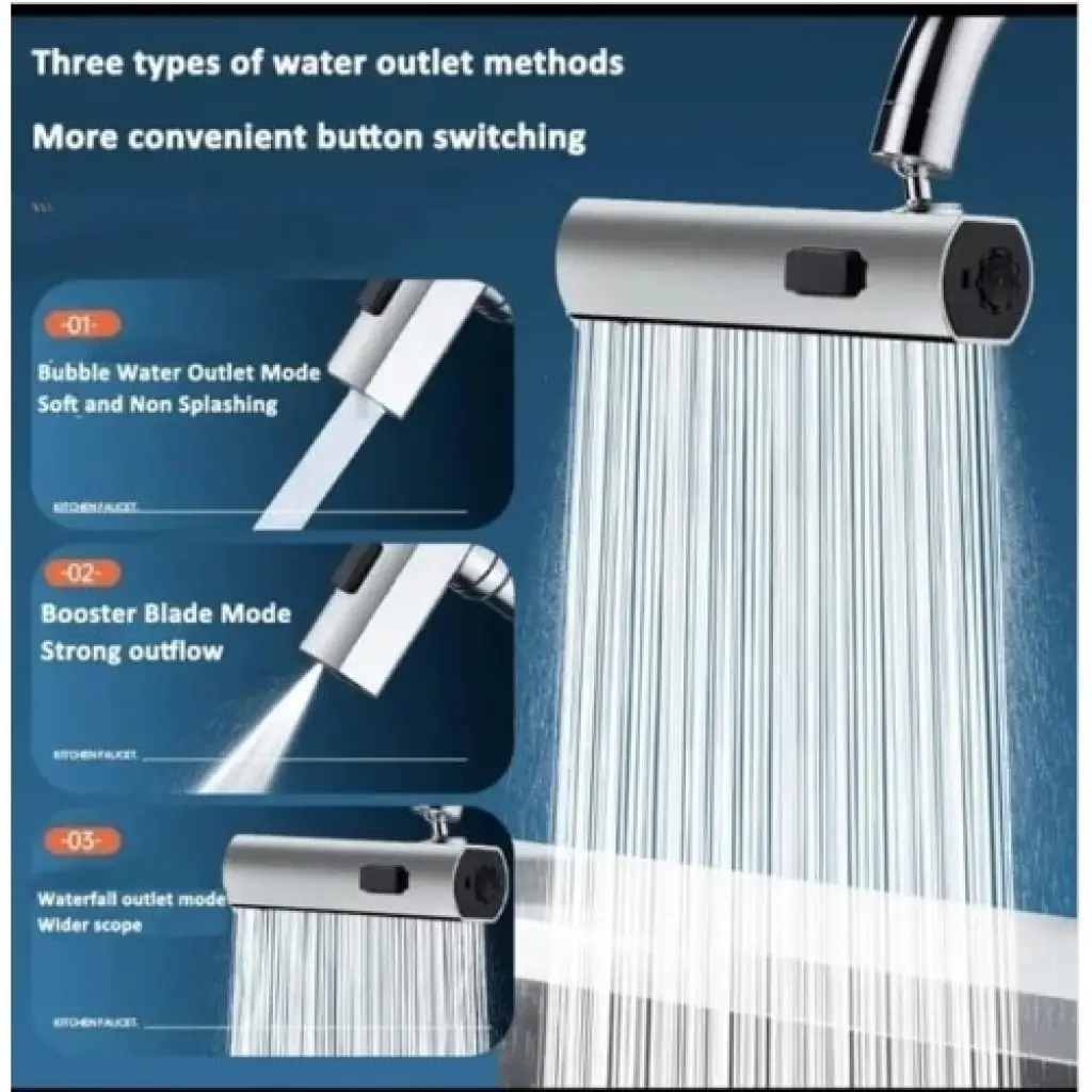 360 Derece Döner Musluk Başlığı - Su Tasarruflu Çok Fonksiyonlu Musluk UcuÜrün Açıklaması:360 Derece Döner Musluk Başlığı ile mutfak ve banyo musluklarınızda su kullanımını optimize edin! Su tasarrufu sağlayan bu çok fonksiyonlu musluk ucu, su akışını iki farklı modda ayarlamanıza olanak tanır: yumuşak köpük akışı ve güçlü sprey modu. 360 derece döner yapısı sayesinde istediğiniz yöne kolayca su yönlendirebilirsiniz. Yüksek kaliteli paslanmaz çelik ve ABS plastik malzemeden üretilmiştir, dayanıklı ve uzun ömürlüdür. Kolay montajı ile her türlü musluğa uyum sağlar ve mutfakta, banyoda veya bahçede kullanım için idealdir. Su tasarrufu yaparken aynı zamanda işlerinizi kolaylaştırın!Paket İçeriği:1 Adet 360 Derece Döner Musluk Başlığı