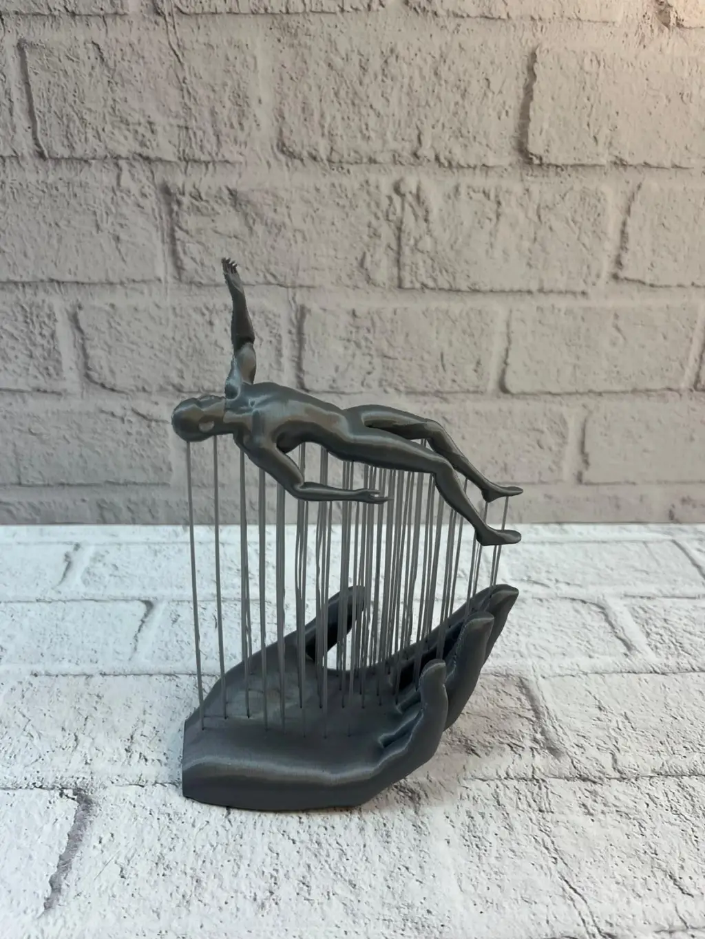 Modern sanat anlayışını yansıtan 3D El Formlu İnsan Figürü Gri, dekorasyona sofistike bir dokunuş ekler. El formu üzerinde konumlanan insan figürü, soyut duruşu ile anlamlı ve estetik bir kompozisyon oluşturur.Gri rengi, mekânda sade ama güçlü bir etki yaratır. Kitaplık, raf, konsol veya masa üstünde sergilendiğinde bulunduğu alanın havasını değiştirir. Minimal ve modern ev dekorasyonu sevenler için ideal bir dekoratif biblodur.
