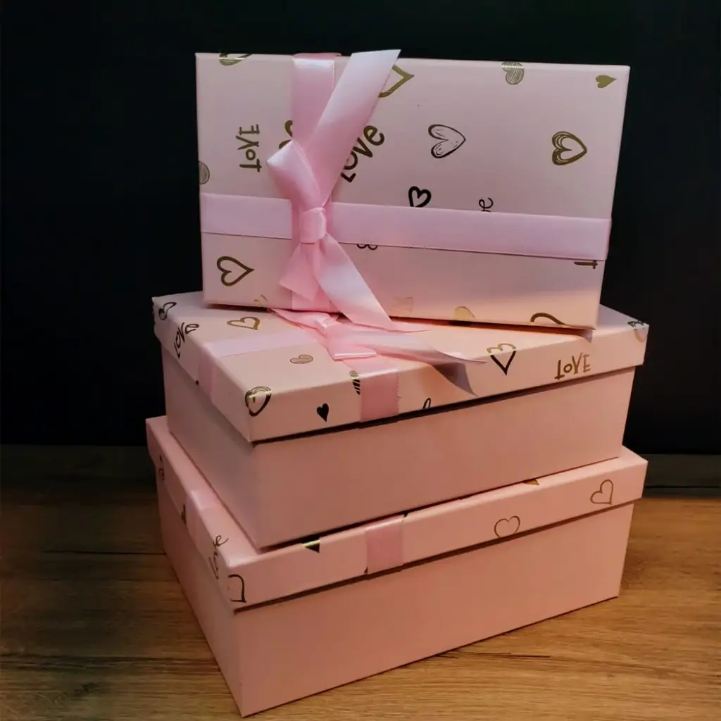 3'LÜ DİKDÖRTGEN HEDİYE KUTUSUÜrün Özellikleri3'lü dikdörtgen hediye kutusu, yüksek kaliteli sert karton malzemeden üretilmiştir. Kutular büyükten küçüğe sıralı olarak tasarlanmış olup, canlı renk seçenekleriyle hediye sunumunu daha özel hale getirir. renk seçenekleriyle gönderim yapılır, böylece her hediye için ideal seçim sunar.Büyük boy Hediye Kutusu: 15.5 cm x 22.5 cm x 5.5 cm Orta boy Hediye Kutusu: 14 cm x 20.5 cm x 7.5 cm Küçük boy Hediye Kutusu : 12.5 cm x 18.5 cm x 5,5 cm Paket İçeriği1 Adet 3'lü Dikdörtgen Hediye Kutusu