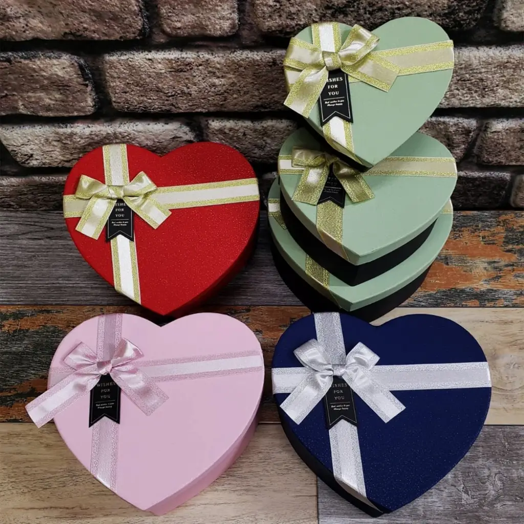 3'LÜ HEDİYELİK KALP KUTU SETİÜrün Özellikleri3'lü hediyelik kalp kutu seti, sert kartondan yapılmıştır ve şık bir tasarıma sahiptir. Farklı renk seçenekleriyle sunulmaktadır ve renklerde gönderim sağlanmaktadır. Büyük boy, orta boy ve küçük boy olmak üzere üç farklı boyutta gelen bu set, hediye vermek için ideal bir seçimdir. Kutular, hediye ve dekorasyon için şıklık katar.Büyük boy: 21 cm x 21.5 cm x 8.5 cm Orta boy: 17.5 cm x 18.5 cm x 7.5 cm Küçük boy: 14.5 cm x 15 cm x 6 cm Paket İçeriği1 Adet 3'lü Hediyelik Kalp Kutu Seti