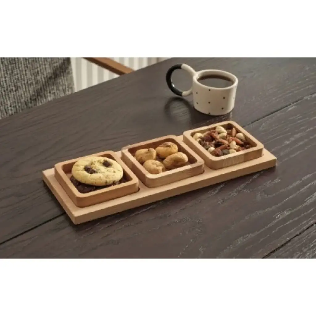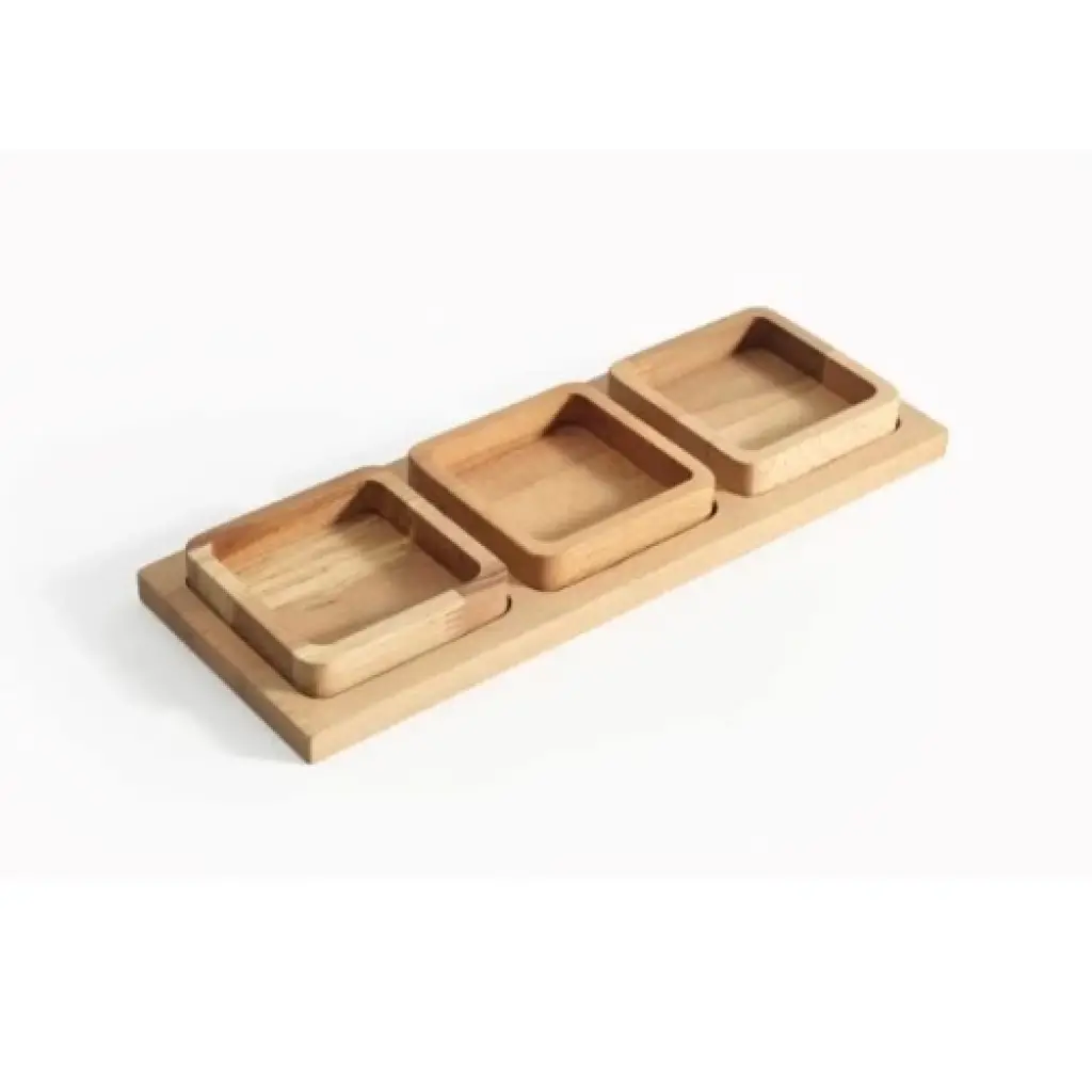 3'LÜ SUNUMLUK SETİÜrün Özellikleri3'lü Sunumluk Seti, şık ve modern tasarımı ile çay saatleri, kahvaltılar, davetler ve atıştırmalık sunumları için idealdir. Ahşap malzemeden üretilmiştir ve kimyasal madde içermez, sağlığa zararsızdır. Set, 3 adet kare sunum kasesi ve 1 adet uzun sunum tahtasından oluşur. Şık ve minimalist tasarımıyla mutfağınıza doğal bir hava katar. Gıda ile temas edebilir, hijyeniktir ve temizliği kolaydır. Kuruyemiş, çerez, lokum, çikolata, kurabiye gibi atıştırmalıklar için kullanıma uygundur.Paket İçeriği1 Adet 3'lü Sunumluk Seti