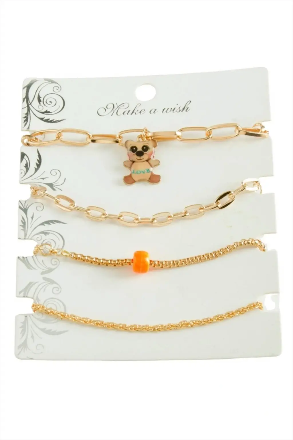 Bileklik; Ürün malzemesi metaldir. Kartlıdır. 1 kartta 4 adet zincir bileklik olarak gönderilecektir. Zincir uzunluğu 19 cmdir.
