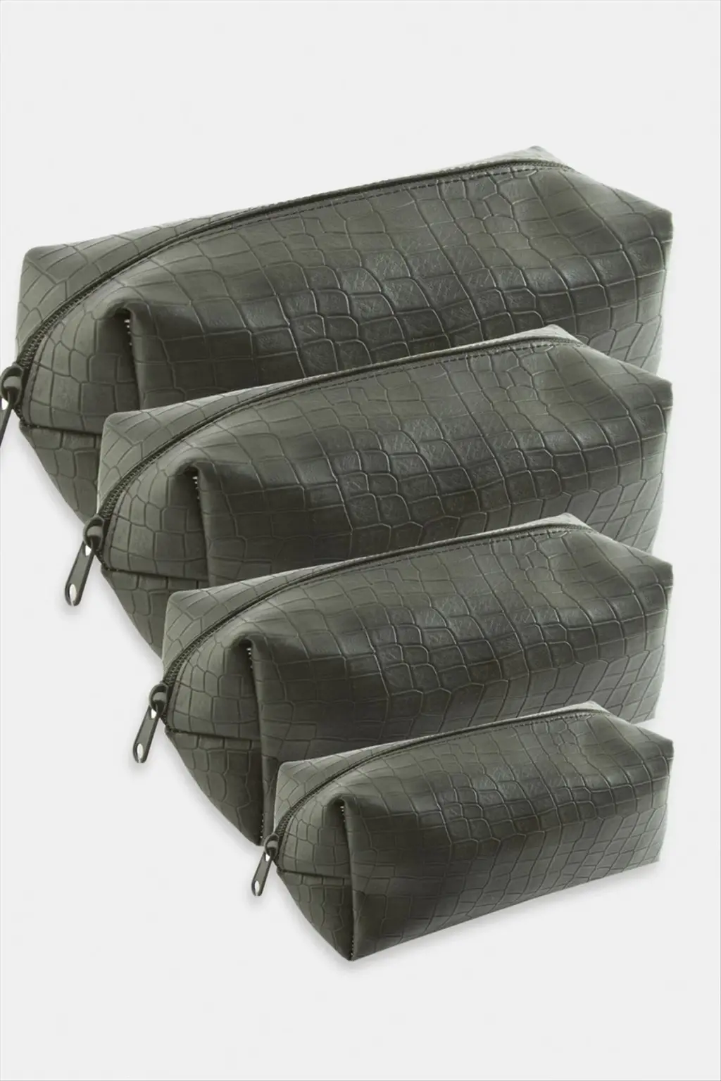 Makyaj Çantası; Ürün malzemesi suni deri ve fermuarlıdır. Fiyat 1 pakette 4 adet çanta için geçerlidir. Çantalar iç içe geçebilmektedir.