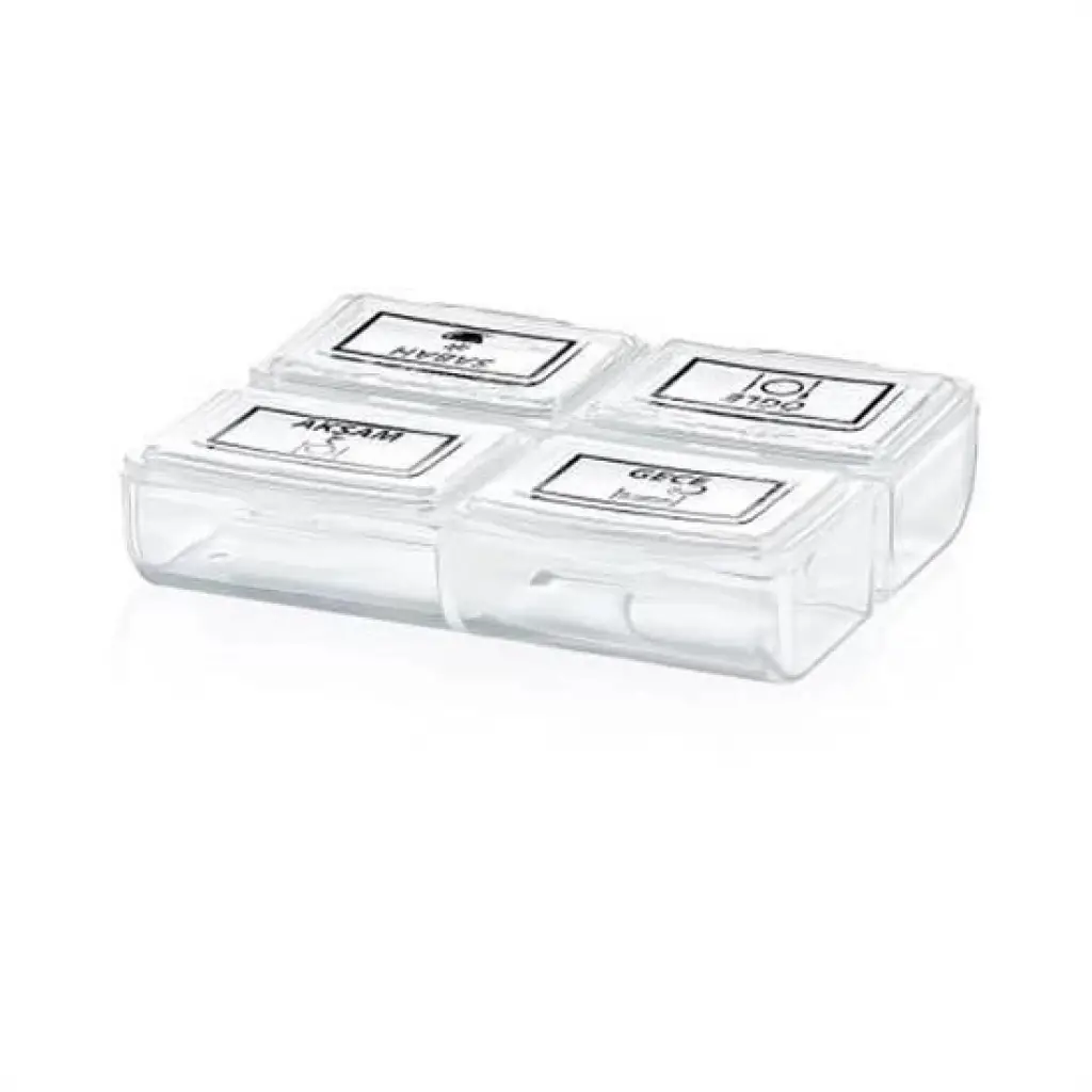 İlaç Saklama Kabı Hatırlatıcı Organizer Hap kutusu ile günlük almanız gereken ilaçları sabah, öğlen, akşam, gece olarak ayırabilir ve (Bu ilacı sabah mı yoksa akşam mı alacaktım?) sorularından kurtulabilirsiniz