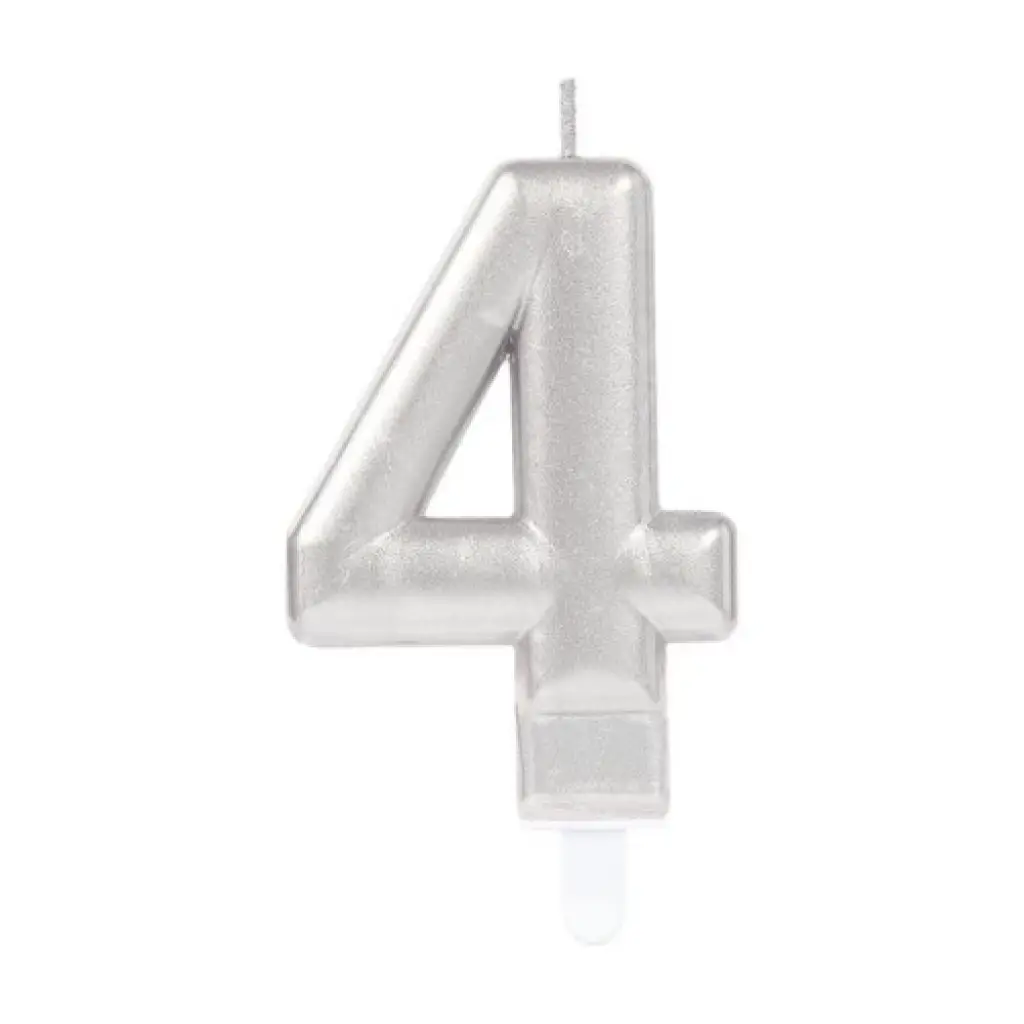 4 Rakamı Mum Gümüş RenkPakette 1 AdetÖlçü : 10 cmKapalı Kutulu Ambalaj
