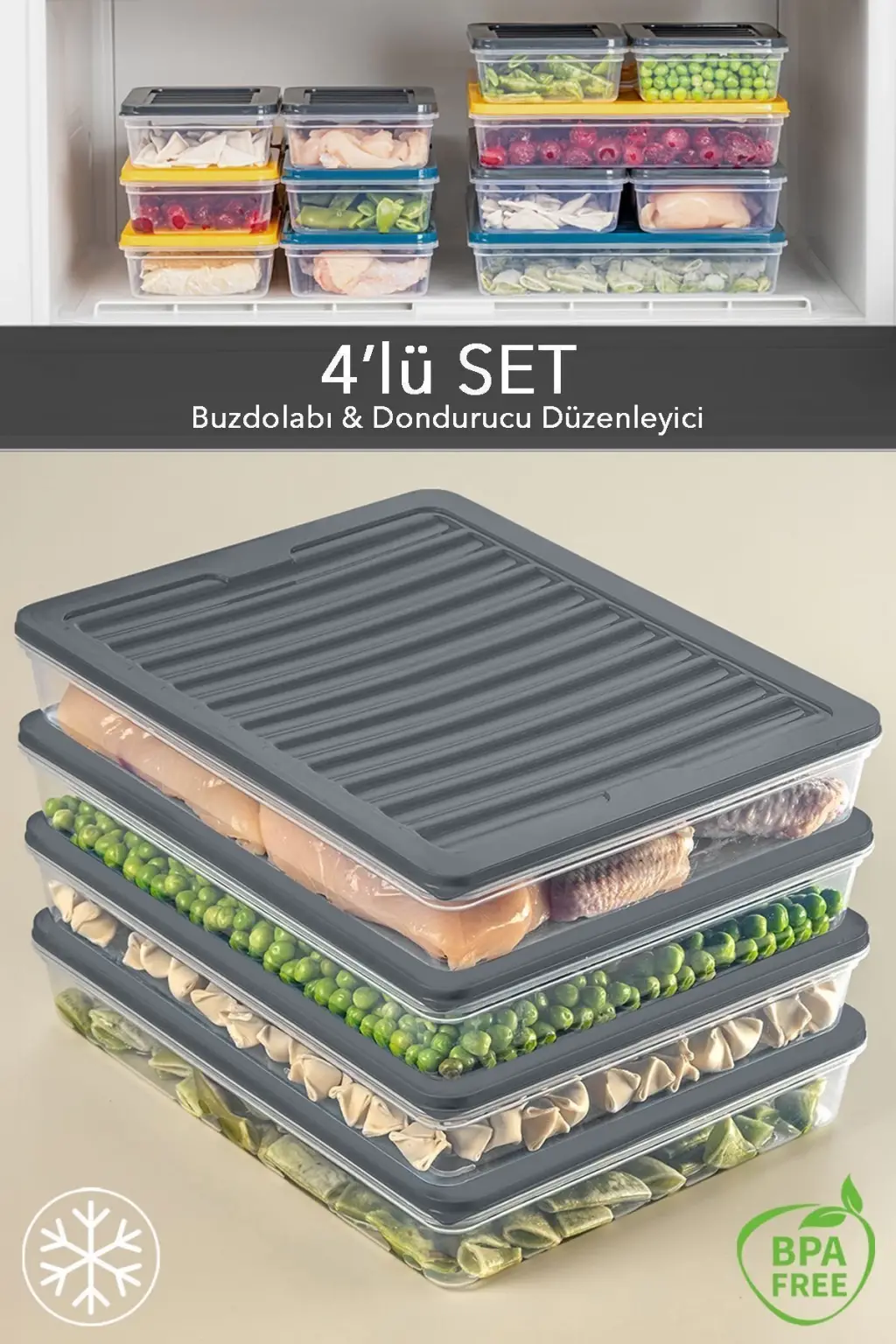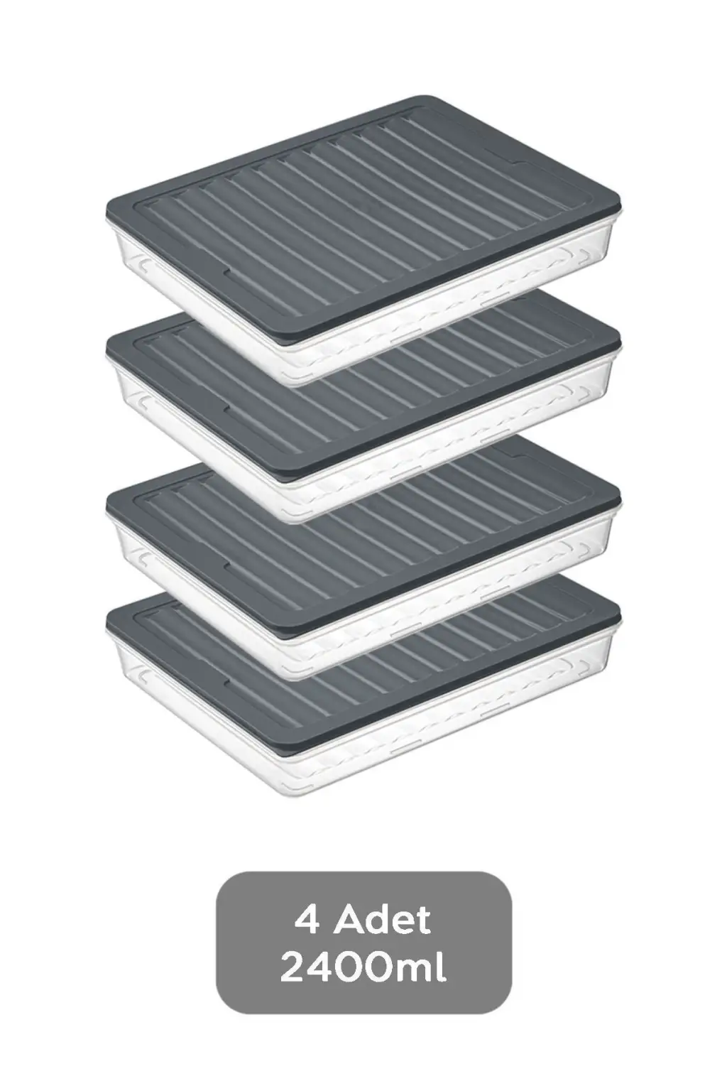 4'lü Buzdolabı Organizer Mikrodalga Ve Difrize Uygun Saklama Kabı Antrasit 4 X 2400 ml