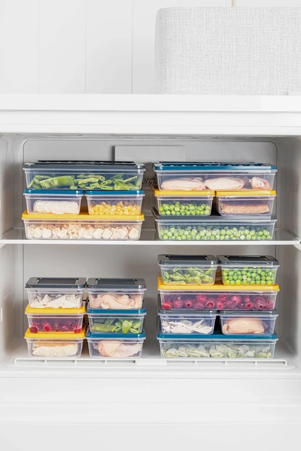 Her bir kap, 2400 ML'lik geniş iç hacmi sayesinde kışlık hazırlıklardan günlük yemeklere, kahvaltılıklardan kuru gıdalara kadar her türlü yiyeceği rahatça saklamanızı sağlar. Sığ ve geniş tasarımı, yiyeceklerin tek katman halinde dondurulmasına olanak tanır, bu da hem daha hızlı donma hem de porsiyonlara ayırmada büyük kolaylık demektir.