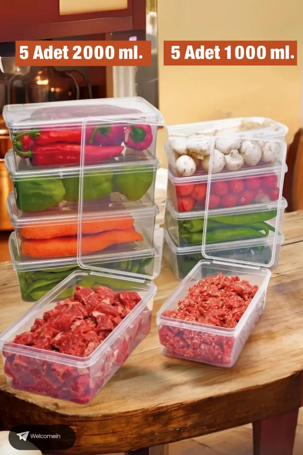- **Adet:** 10 adet 1 litre ve 2 Litre kapasitesine sahip saklama kabı.