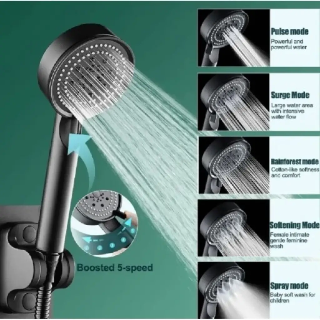 5 Kademeli Duş Başlığı SiyahÜrün Özellikleri:Bu siyah ve 5 fonksiyonlu duş başlığı, banyo deneyiminizi bir üst seviyeye taşıyacak şık ve işlevsel bir üründür.Beş farklı fonksiyon seçeneği ile istediğiniz duş deneyimini yaşamanıza olanak tanır. Böylece duşta rahatlamak, dinlenmek veya enerji depolamak için ideal bir üründür.Kurulumu oldukça kolaydır ve standart duş başlığı boyutlarına uyacak şekilde tasarlanmıştır. Üstelik, modern ve şık tasarımı sayesinde banyonuza estetik bir görünüm kazandırır.Paket İçeriği:1 adet 5 Kademeli duş başlığı
