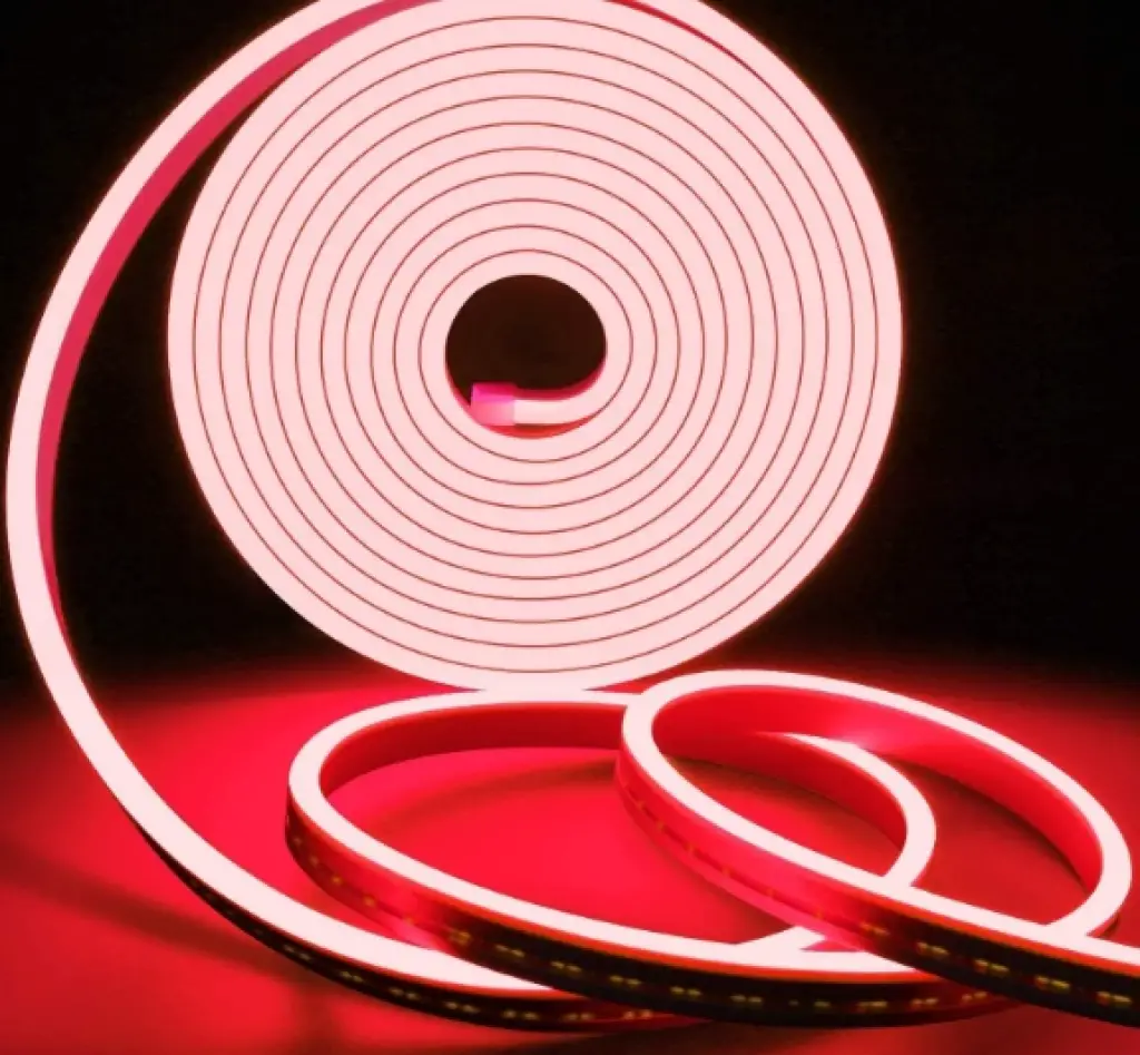 Bu ürün, dekoratif aydınlatma için ideal, 12V Kırmızı renkli neon LED şerit olup hem iç hem de dış mekanlarda kullanım için uygundur.