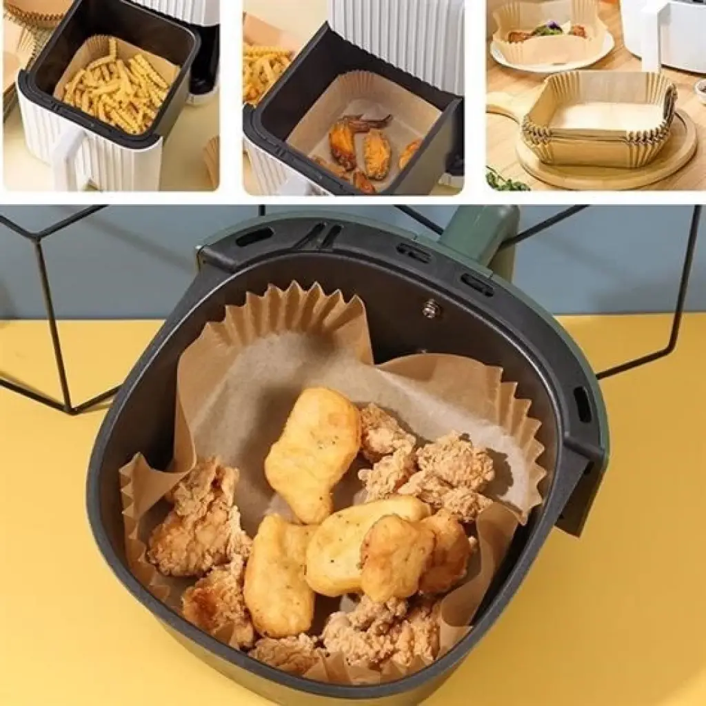 50 Adet Air Fryer Pişirme Kağıdı Tek Kullanımlık Hava Fritöz Yağ Geçirmez Yapışmaz Kare Tabak Model PVC