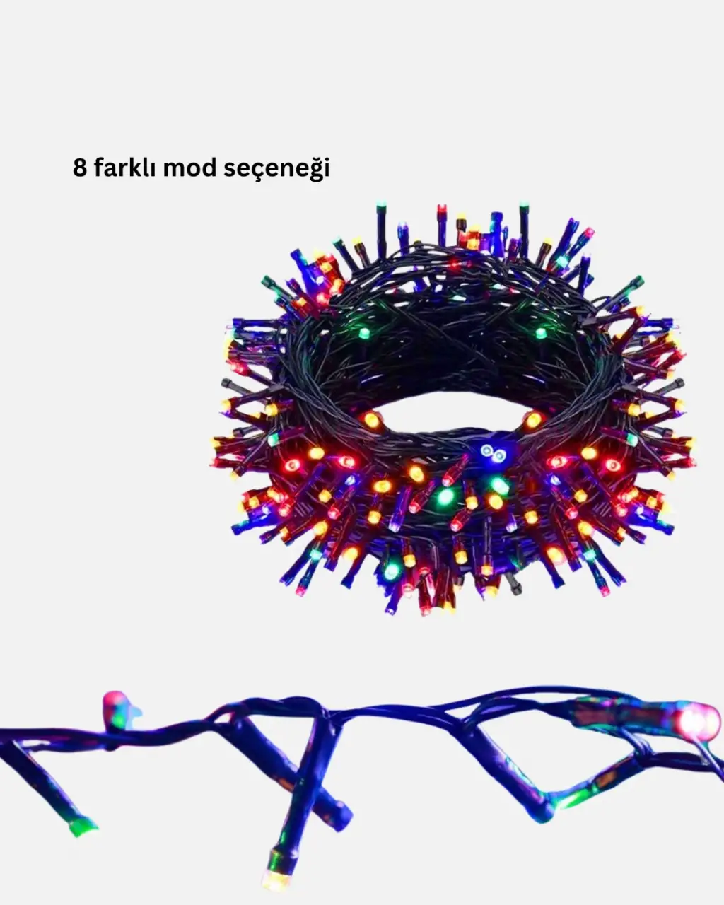 Siyah Kablolu 50 Ampullü 5 Metre LED Işık, ev dekorasyonundan bahçe süslemelerine kadar her ortamda etkileyici bir ambiyans yaratır. 50 adet yüksek parlaklıklı LED ampul, 5 metrelik uzun kablo boyunca eşit dağılmıştır ve net, sıcak bir aydınlatma sağlar. LED teknolojisi sayesinde düşük enerji tüketimiyle maksimum ışık gücü sunar. 8 farklı ışık modu sayesinde ister sabit, ister yanıp sönen, ister dalgalı aydınlatma efektleriyle istediğiniz atmosferi yaratabilirsiniz. Tek tuşla mod geçişi yapabilir, dilediğiniz efekti sabitleyebilirsiniz. Siyah kablo, modern bir görünüm kazandırırken, sağlam yapısıyla uzun ömürlü kullanım sunar. Türk priz sistemine uyumlu fiş bağlantısı sayesinde güvenli kullanım sağlar. Hem iç hem dış mekanlarda kullanılabilir; balkon, teras, düğün, kafe veya yılbaşı süslemeleri için idealdir. Enerji tasarruflu yapısı uzun vadede ekonomik avantaj sunar.