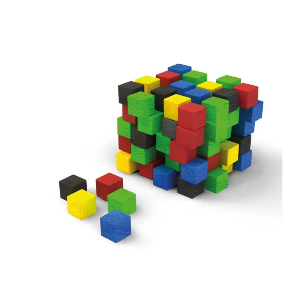 100 adet 5 farklı renkten oluşan ahşap birim küpler;çocuğunuzla eğlenerek ve öğrenerek vakit geçirebileceğiniz bir eğitim metaryelidir. Ahşap birim küpler 2x2 cm. 100 adet renkli küplerden oluşur. Birim küpler %100 doğal ahşaptan üretilerek sağlığa zararsız organik su bazlı boyalarla boyanmıştır. Ahşap birim küplerle çocuklar geometrik şekiller,çeşitli örüntüler ve figürler oluşturabilirler. Bu şekillleri oluştururken hayal güçlerini,dikkat ve konsantrsyonlarını geliştirirler.