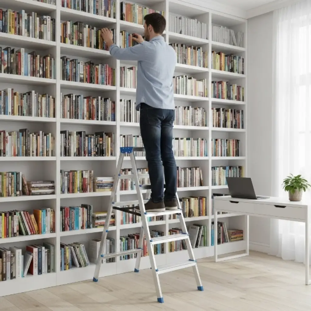 5+5 ÇİFT BASAMAKLI ALÜMİNYUM METAL MERDİVEN Ürün Özellikleri5+5 Çift Basamaklı Alüminyum Metal Merdiven, yüksek alanlarda güvenli ve pratik kullanım sunan dayanıklı bir yardımcı ekipmandır. 115 cm yüksekliği sayesinde ev, ofis ve profesyonel alanlarda rahat erişim imkânı sağlar. Karşılıklı 5+5 basamak tasarımı ile iki taraftan da kullanılabilen bu çift basamaklı merdiven, işlerinizi daha hızlı ve konforlu şekilde yapmanıza yardımcı olur. Hafif fakat sağlam alüminyum gövde yapısı sayesinde kolay taşınır ve dengeli bir duruş sunar. 8 cm baş genişliği bulunan basamak yüzeyi, güvenli ve rahat basış alanı oluşturur. Katlanabilir tasarımı sayesinde kullanılmadığında yer kaplamaz ve kolayca muhafaza edilir. Ev içi bakım, montaj, temizlik ve boya işleri için ideal bir alüminyum metal merdiven modelidir.Ürün Teknik Özellikleri Özellik Açıklama Ürün Adı 5+5 Çift Basamaklı Alüminyum Metal Merdiven Yükseklik 115 cm Basamak Yapısı 5+5 çift taraflı kullanım Baş Genişliği 8 cm Malzeme Alüminyum metal Paket İçeriği1 adet 5+5 Çift Basamaklı Alüminyum Metal Merdiven