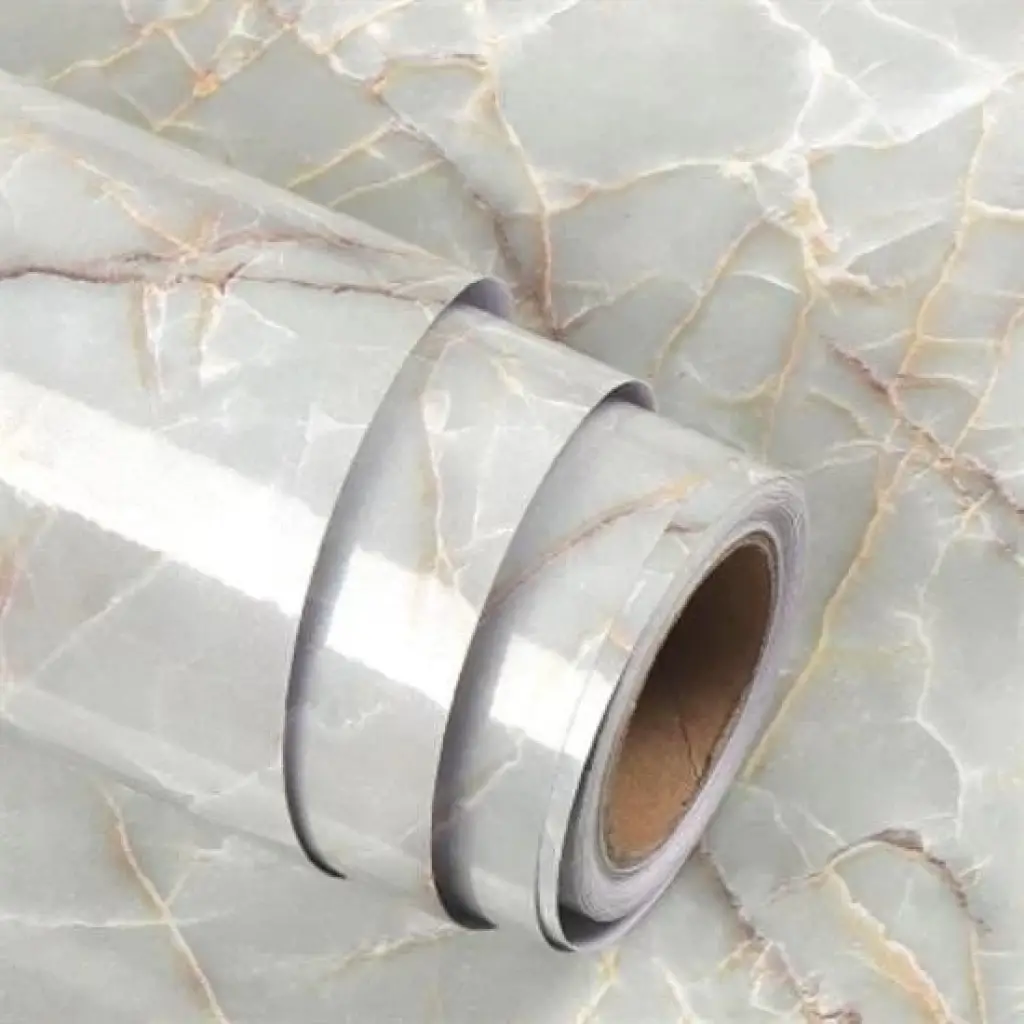 Mermer desenli kaplama duvar kağıdı yapışkanlı folyo ürünü su geçirmez ve ateş almaz özelliğe sahiptir