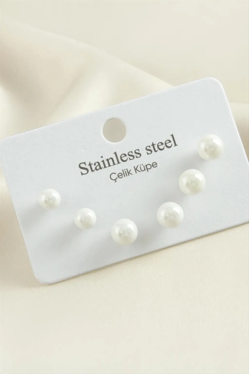 Küpe; Ürün malzemesi sedef boncuk ve çeliktir. Ürün 1 sınıf kaliteli malzemeden üretilmiştir. 1 kartta 6 adet inci küpe olarak gönderilecektir. Ürün küpe boyu 4-6-8 mmdir.