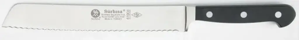 61908 - Sürmene Sıcak Dövme Ekmek Bıçağı 20,5 cm, yüksek kaliteli sıcak dövme çeliği ile üretilmiş, uzun ömürlü ve etkili bir ekmek bıçağıdır. Ekmeklerinizi zahmetsizce ve düzgün bir şekilde dilimlemenize yardımcı olur.