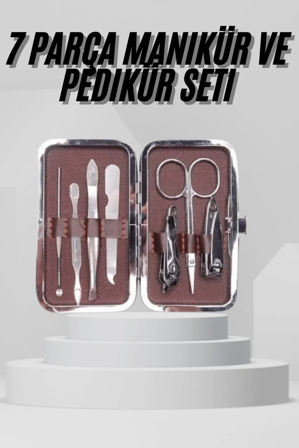 7 Parça Paslanmaz Çelik Manikür ve Pedikür Seti – Şıklığı ve Pratikliği Bir Arada Sunan Kişisel Bakım ÇözümüGünlük bakım rutininizi profesyonel bir dokunuşla tamamlayabileceğiniz 7 parçalık bu manikür ve pedikür seti, hem kullanım kolaylığı hem de dayanıklılığıyla öne çıkar. Paslanmaz çelikten üretilmiş olması sayesinde uzun ömürlüdür ve sık kullanımda bile ilk günkü keskinliğini ve formunu korur. Tırnak makası, makas, törpü, cımbız ve tırnak itici gibi temel bakım araçlarını barındıran bu set, kişisel bakımınızı zahmetsiz ve etkili hale getirir.Her bir parça, ergonomik yapısıyla rahat bir tutuş sağlar ve hassas bölgelerde dahi kontrollü kullanım imkanı sunar. Şık ve deri görünümlü taşıma kutusu, setin hem düzenli kalmasını sağlar hem de çantanızda yer kaplamadan yanınızda taşımanıza olanak tanır. Kompakt boyutları sayesinde seyahatlerde, iş yerinde ya da günlük yaşamda kolayca kullanılabilir.Bu set, sadece tırnak kesimi ve şekillendirmesi için değil, aynı zamanda kaş ve kütikül düzenlemesi gibi detaylı bakım ihtiyaçları için de idealdir. Hijyenik malzeme yapısı kolayca temizlenebilir ve uzun süreli kullanımda dahi paslanma ya da aşınma göstermez. Kendi bakımını evde yapmak isteyenler için ekonomik ve kullanışlı bir çözümdür.Gerek estetik görünümü, gerekse fonksiyonelliğiyle 7 Parça Manikür ve Pedikür Seti; hem günlük kullanımda hem de özel günlerde mükemmel bir bakımın vazgeçilmez yardımcısı olacaktır.